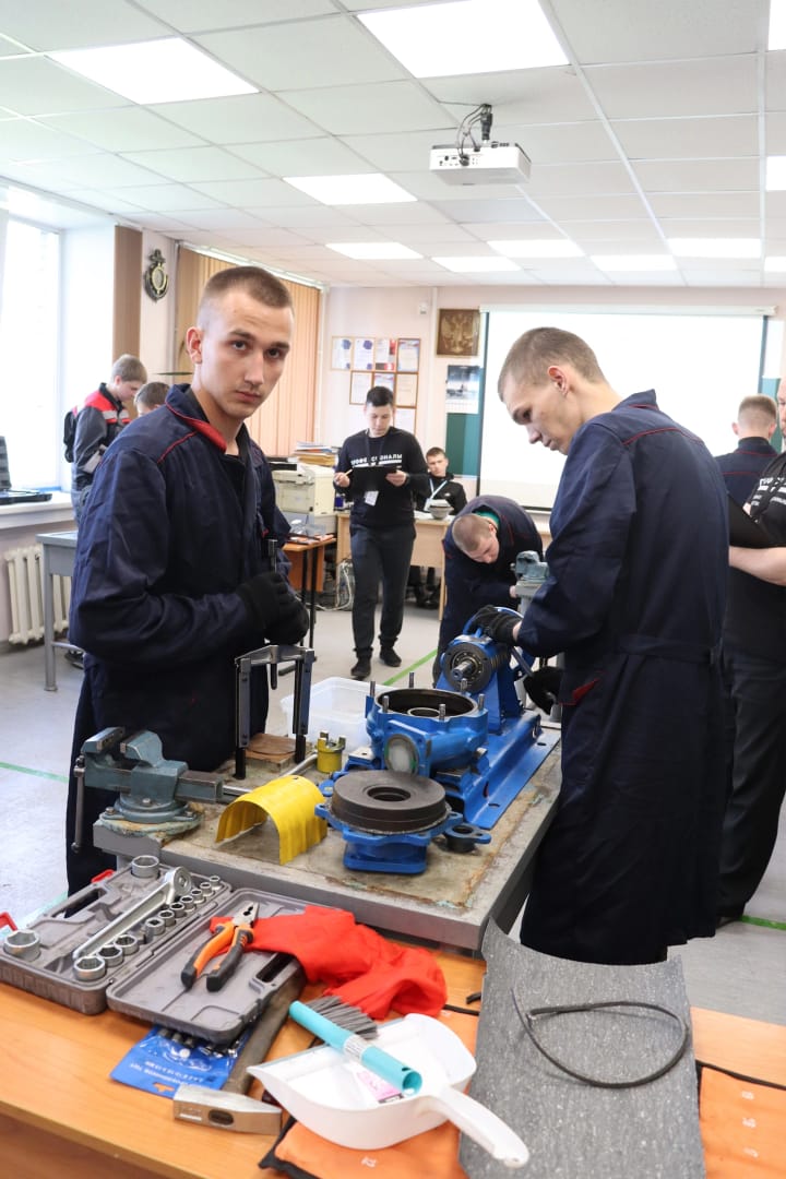 Модуль В «Техническое обслуживание судовых энергетических установок». На этом модуле команды производили на одном из цилиндров судового дизельного двигателя замену компрессионных и маслосъёмных колец на поршне, регулировку тепловых зазоров привода клапанов, проверку и регулировку давления впрыска форсунки.