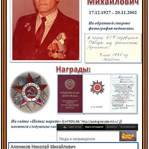Рядовой Алеников Николай Михайлович 17.12.1927 – 20.11.2002