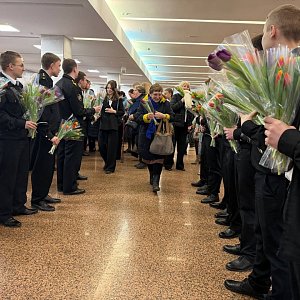 После концерта, каждой женщине, курсанты нашего колледжа вручили букет весенних цветов и осыпали пожеланиями любви и счастья.
