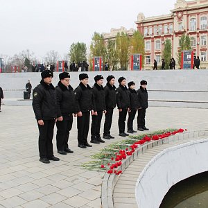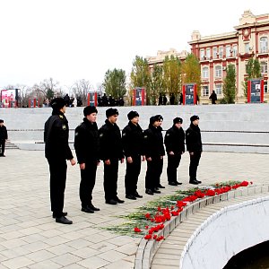 Возложение венков и цветов посвящено первому освобождению города Ростова-на-Дону от немецко-фашистских захватчиков.