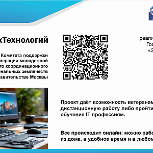 Дистанционное трудоустройство и бесплатное обучение IT профессиям ветеранов СВО, имеющих ограниченные возможности здоровья. Проект даёт возможность ветеранам СВО найти новую дистанционную работу либо пройти бесплатное обучение IT профессиям.