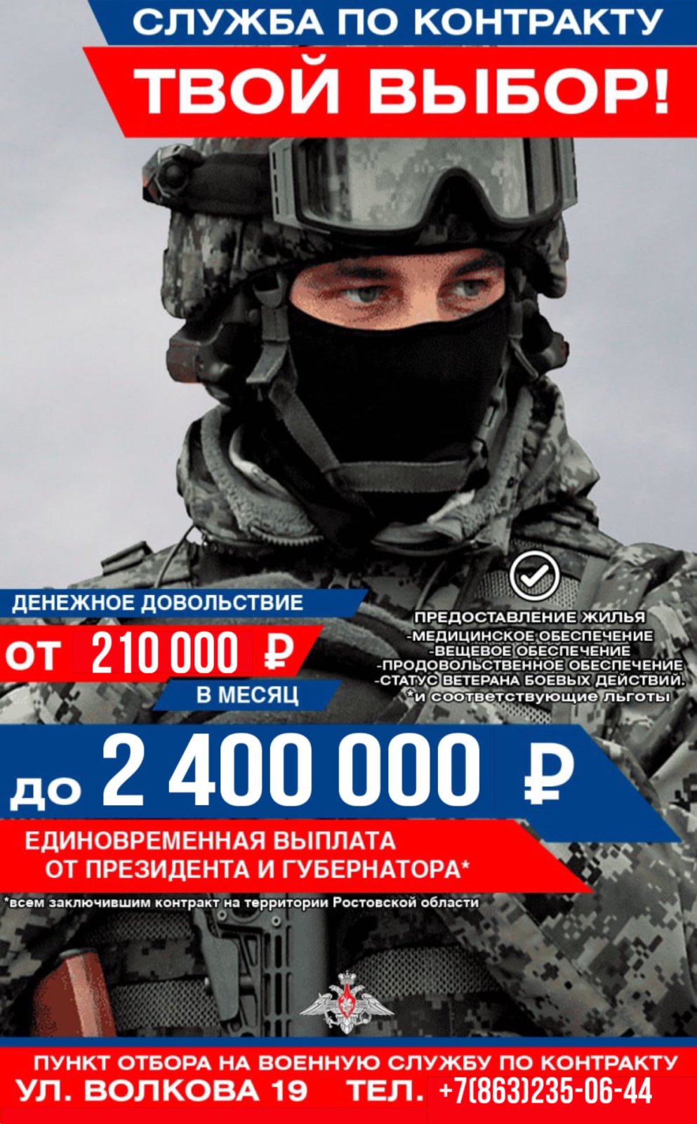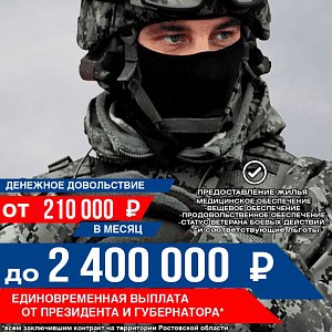 - 400000 рублей выплата от Министерства обороны Российской Федерации.