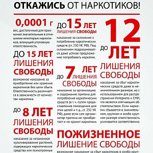 В заключение хочу призвать всех задуматься о том, что употребление наркотиков в 100 случаях из 100 приводит в необратимым физическим и моральным последствиям, а нарушение закона в попытке заработать, сбывая наркотики, производя, культивируя их либо пропагандируя противоправное поведение, может сломать вашу жизнь навсегда.