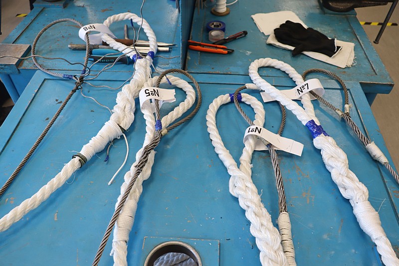 После вязания узлов участники чемпионата плели огон простым способом, производили клетневание места пробивки на шестипрядном стальном тросе и на синтетическом (растительном) канате.
