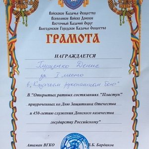 казачества государству Российскому» и одержали победу в командном зачете по армейскому рукопашному бою.