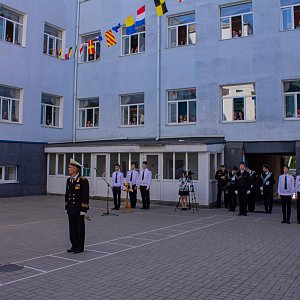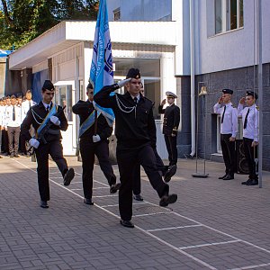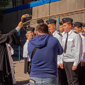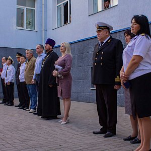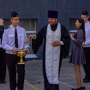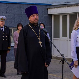 По флотскому ритуалу Настоятель прихода храма пророка Илии г. Ростова-на-Дону, Александровского благочиния иерей Дионисий Валерьевич Реуцкий благословил курсантов на хорошую учебу. Первокурсники торжественно обещали быть достойными курсантами и не опорочить честь и достоинство российского моряка.