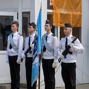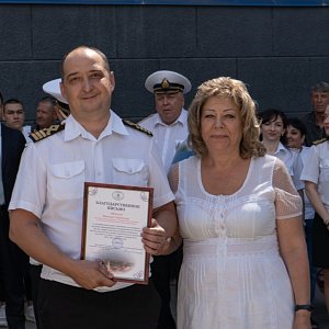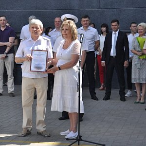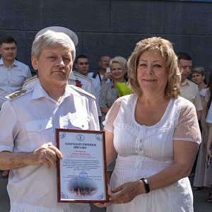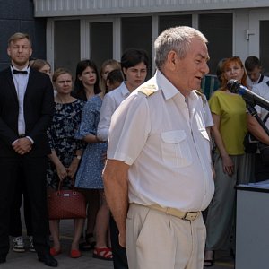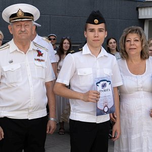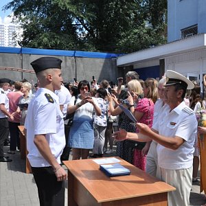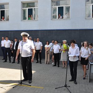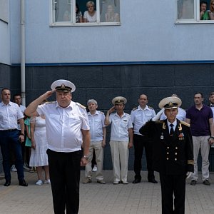 Ветеран Военно-морского флота капитан II ранга бывший заместитель директора по учебно-воспитательной работе и социальным вопросам Алексей Михайлович Тимошенко. Представители флотского сообщества.