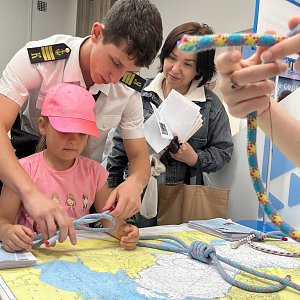 Курсанты нашего колледжа рассказывали о специальностях морского дела, показывали действующие на флоте виды узлов и учили гостей ярмарки их правильно вязать.