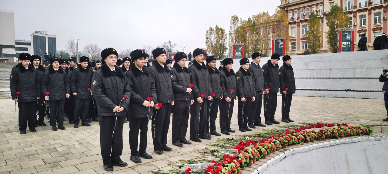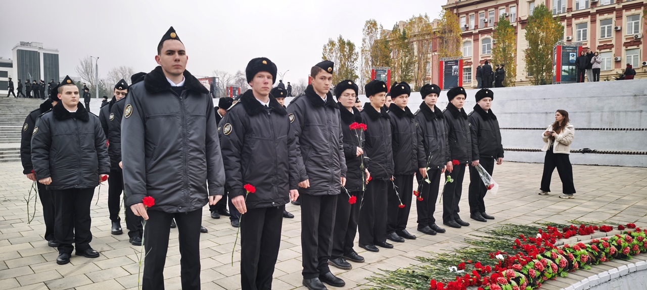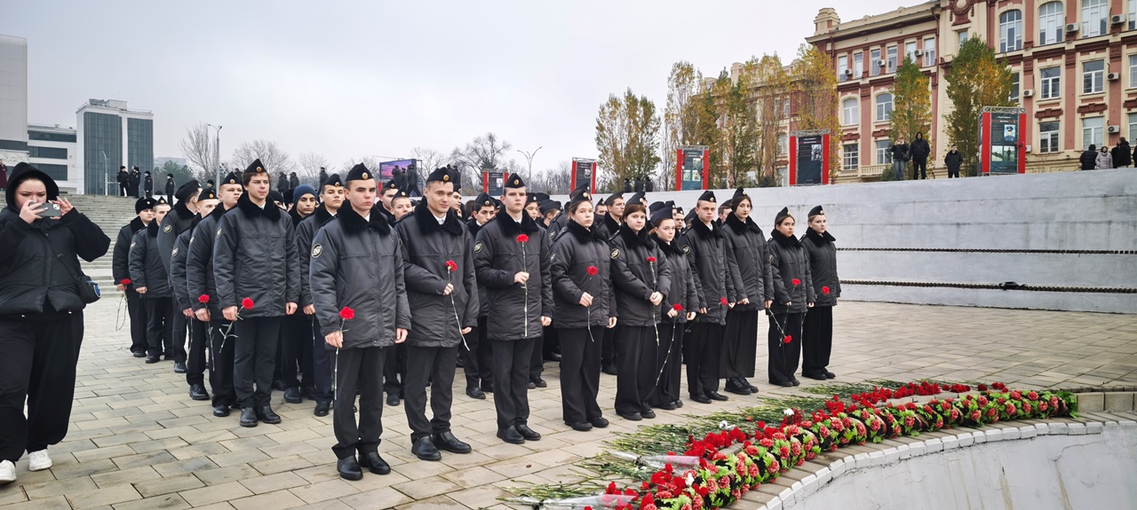 29 ноября 2025 года курсанты ГБПОУ РО «Ростовский-на-Дону колледж водного транспорта» приняли участие в мероприятии, посвященном торжественному возложению венков и цветов к мемориальному комплексу «Стела Воинам-освободителям».