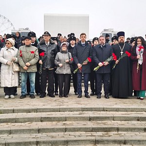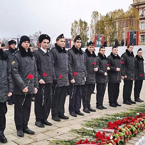 Возложение венков и цветов посвящено первому освобождению города Ростова-на-Дону от немецко-фашистских захватчиков.