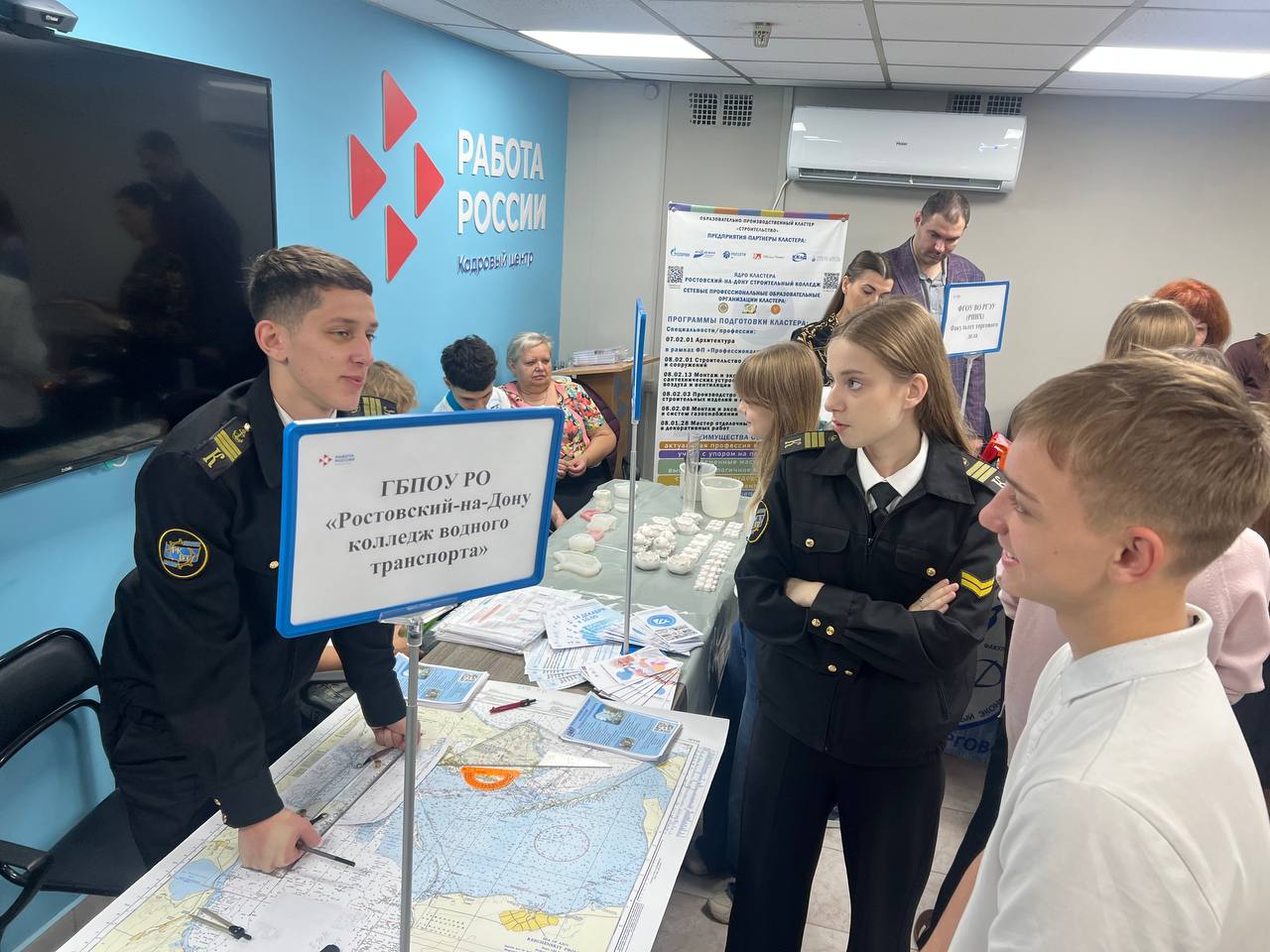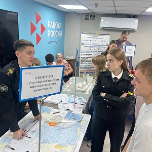 11 ноября 2025 года курсанты ГБПОУ РО "Ростовский-на-Дону колледж водного транспорта" приняли участие во Всероссийской ярмарке трудоустройства, которая проводилась в рамках Федерального этапа от ГКУ РО «Центр занятости населения Аксайского района».