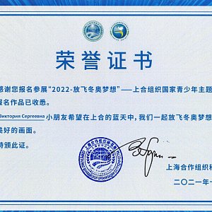 29 ноября 2021 г. курсант ГБПОУ РО «Ростовский-на-Дону колледж водного транспорта» группа Т-22 Капля Виктория, приняла участие в международной выставке картин детей и молодых художников стран ШОС «Высь за мечтой – зимние Олимпийские игры-2022 в Пекине». По итогам участия в конкурсе, Виктория была награждена почетным дипломом.