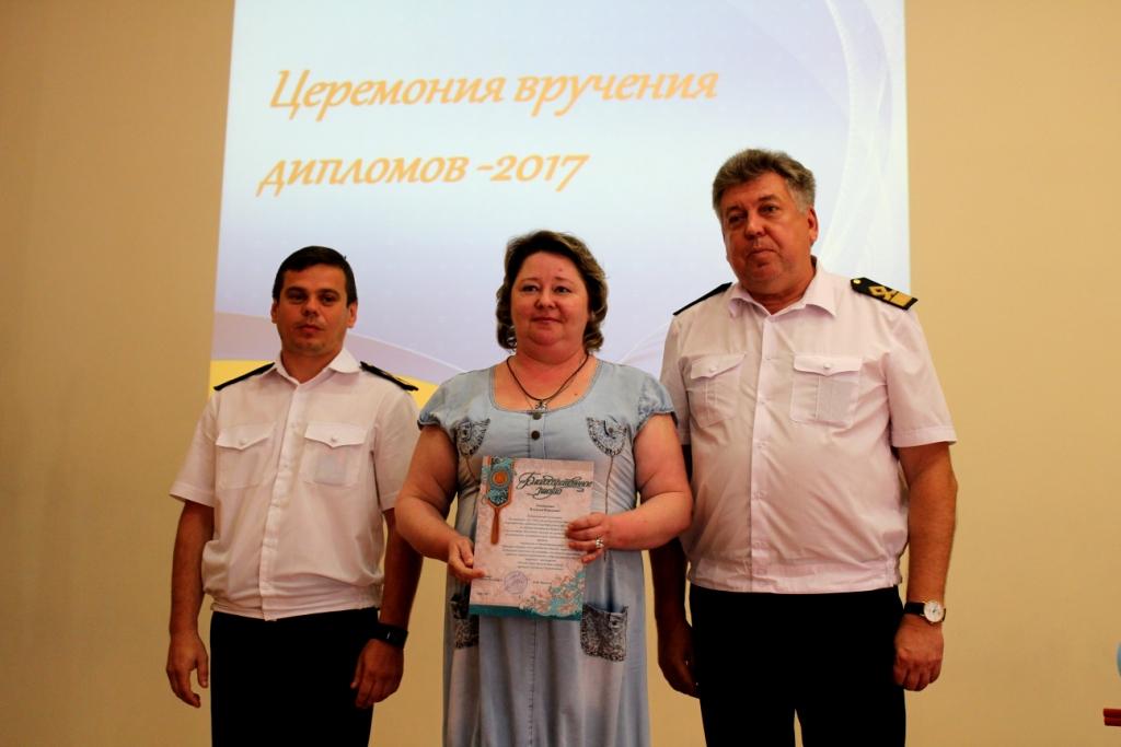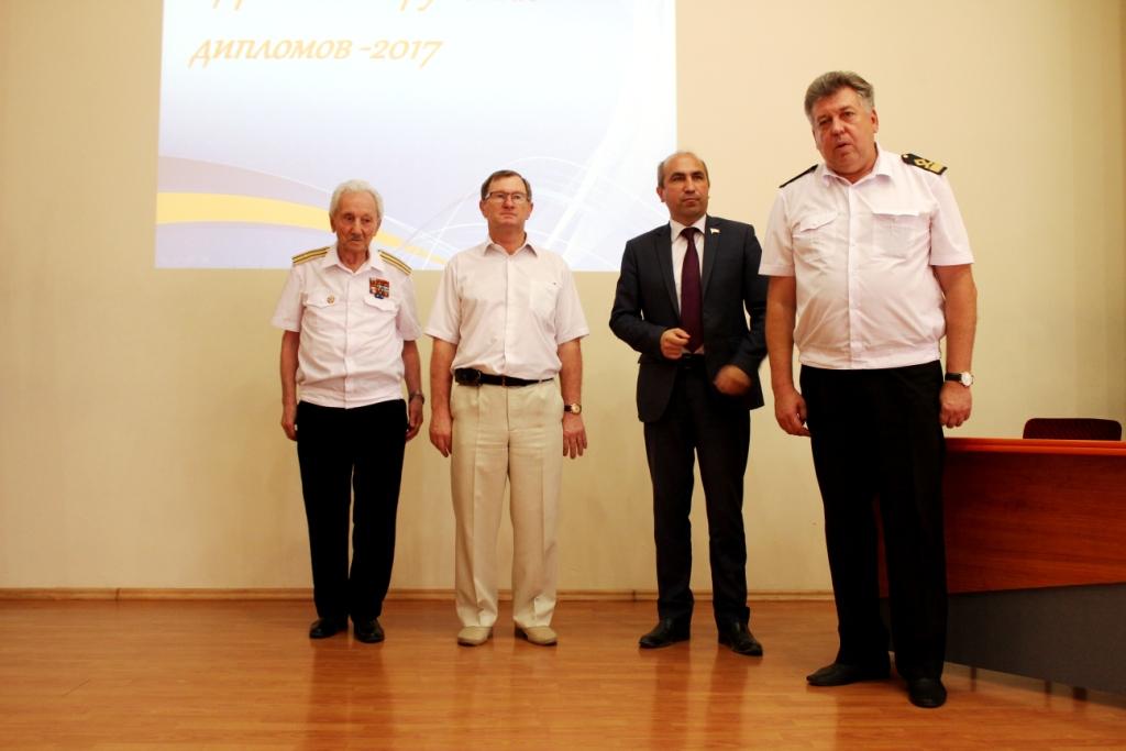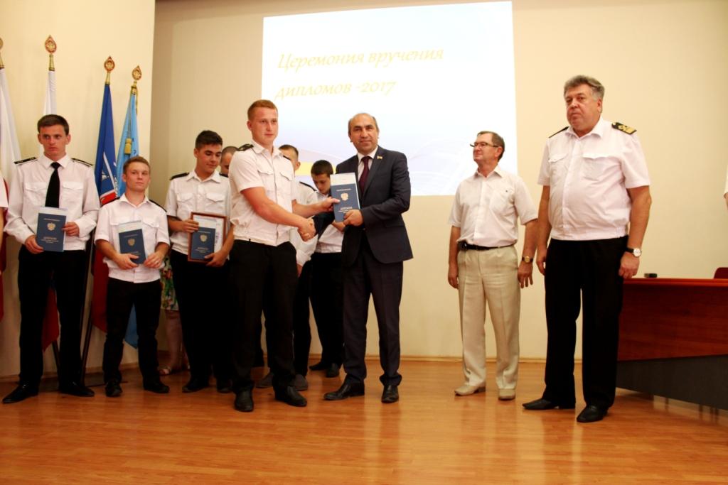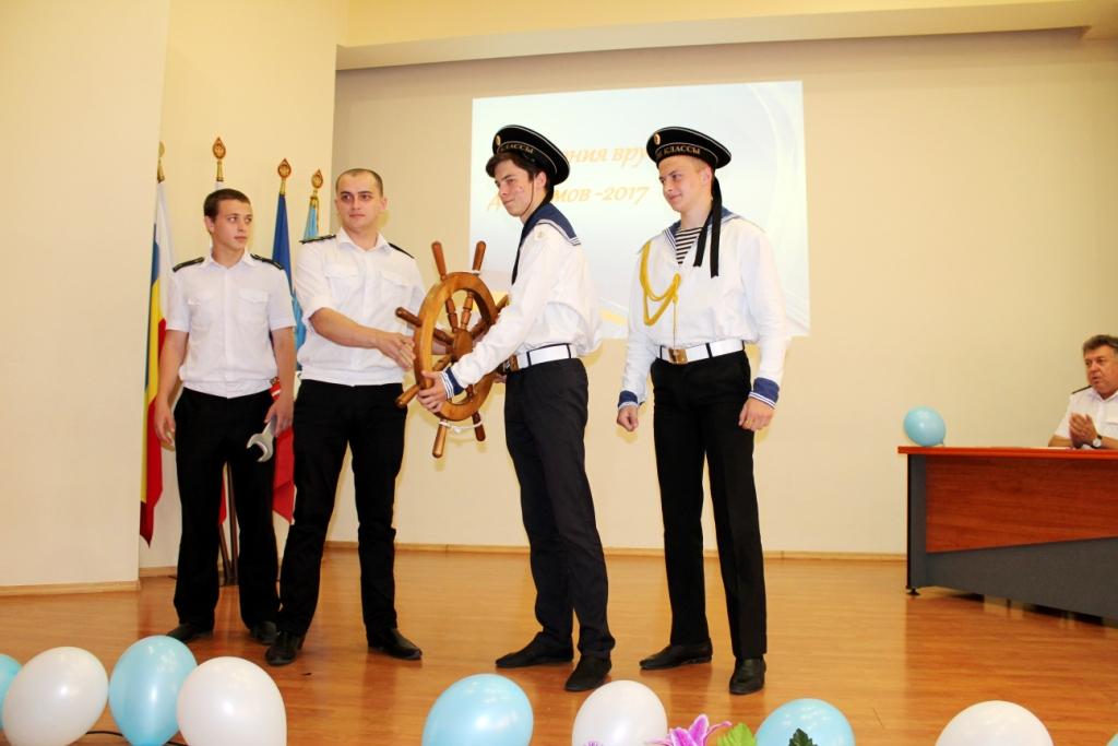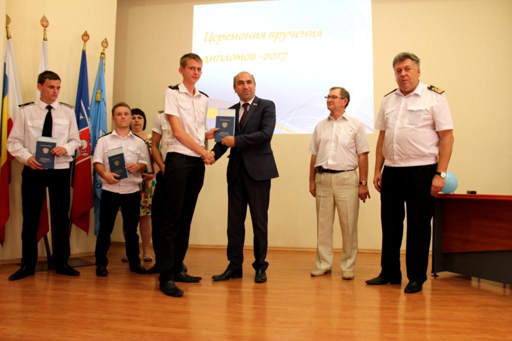 4 июля 2017г. в ГБПОУ РО «Ростовский-на-Дону колледж водного транспорта» состоялась церемония вручения дипломов об окончании колледжа. В церемонии вручения дипломов приняли участие: председатель Государственной Экзаменационной комиссии капитан-наставник службы безопасности мореплавания ООО «Палмали» Василий Иванович Полковников. Заместитель генерального директора ОАО «Донинтурфлот» Сергей Афанасьевич Овсиенко. Директор колледжа почетный работник общего образования РФ Владимир Юрьевич Маевский. Заместитель директора по учебной работе Александр Анатольевич Анпилогов. Заместитель директора по учебно-производственной работе Александр Сергеевич Мельситов. Заместитель директора по воспитательной работе Алексей Михайлович Тимошенко.