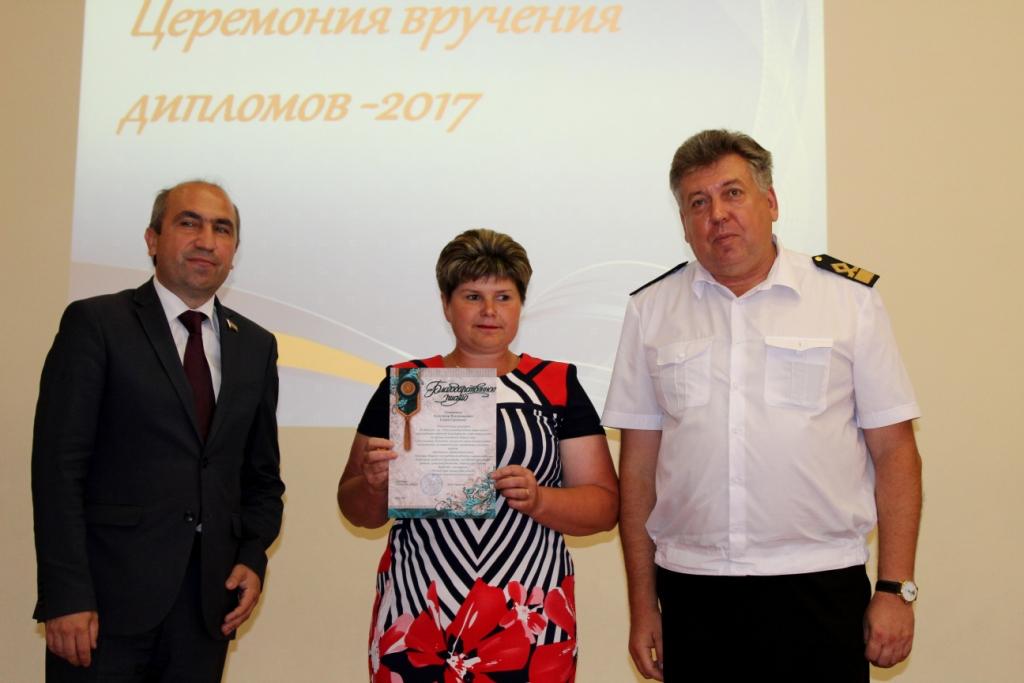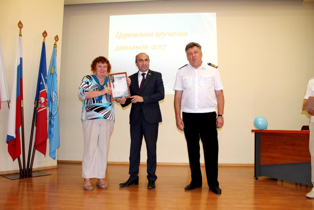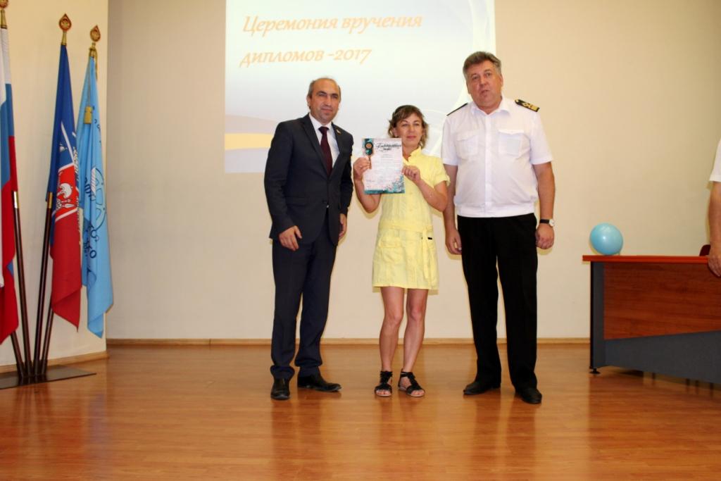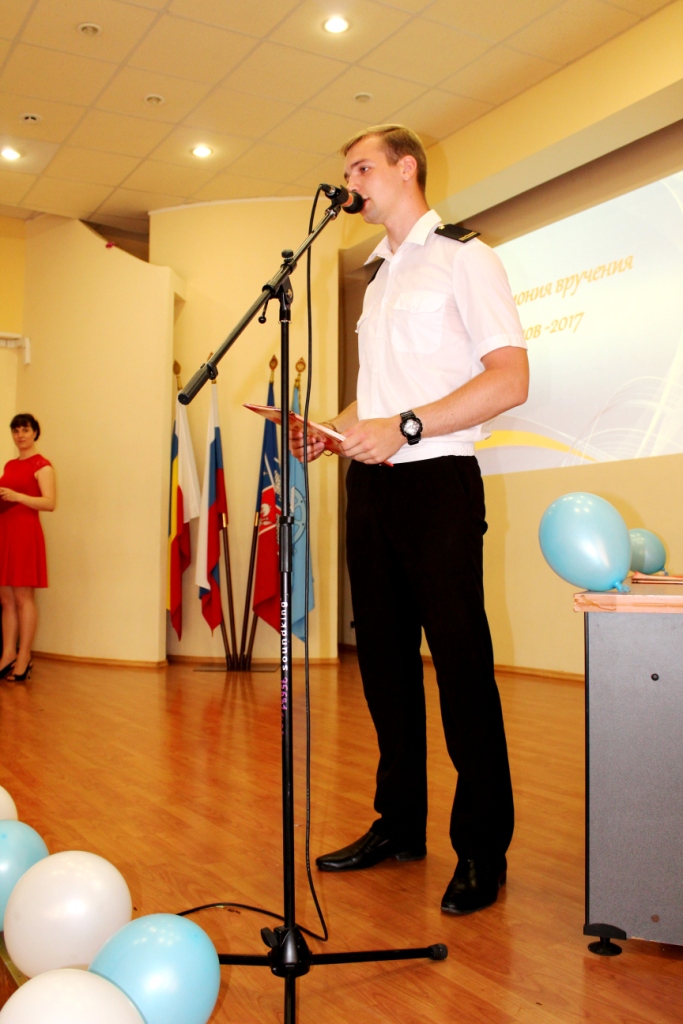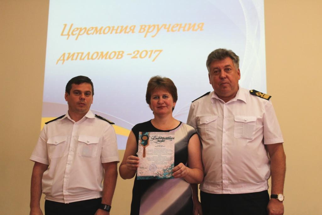4 июля 2017г. в ГБПОУ РО «Ростовский-на-Дону колледж водного транспорта» состоялась церемония вручения дипломов об окончании колледжа. В церемонии вручения дипломов приняли участие: председатель Государственной Экзаменационной комиссии капитан-наставник службы безопасности мореплавания ООО «Палмали» Василий Иванович Полковников. Заместитель генерального директора ОАО «Донинтурфлот» Сергей Афанасьевич Овсиенко. Директор колледжа почетный работник общего образования РФ Владимир Юрьевич Маевский. Заместитель директора по учебной работе Александр Анатольевич Анпилогов. Заместитель директора по учебно-производственной работе Александр Сергеевич Мельситов. Заместитель директора по воспитательной работе Алексей Михайлович Тимошенко.