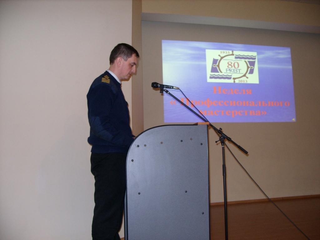 В период с 18 по 22 февраля в ГБОУ СПО РО «РКВТ» проводилась неделя профессионального мастерства среди выпускных групп отделения НПО по профессии «Судоводитель - помощник механика судов речного флота» и СПО по специальности «Судовождение на ВВП и прибрежном плавании». Это мероприятие было приурочено к 80 летию образования Государственного бюджетного образовательного учреждения среднего профессионального образования Ростовской области «Ростовский-на-Дону колледж водного транспорта».