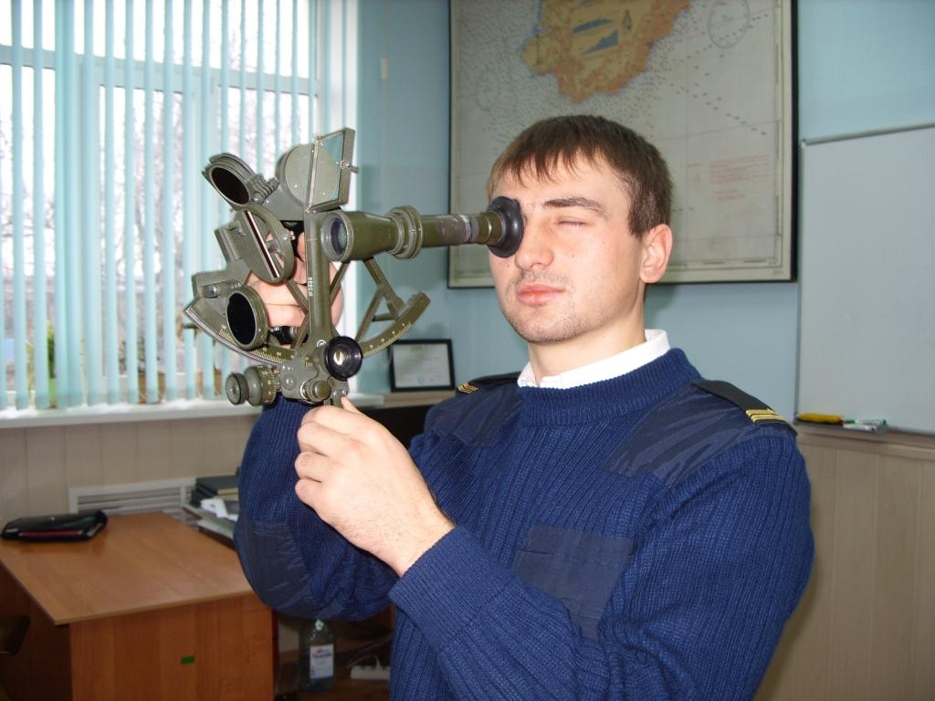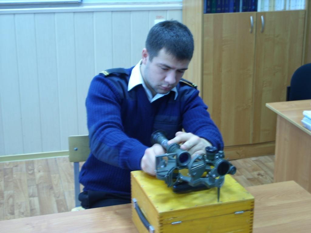 | Курсантам ставилась задача продемонстрировать свои знания и умения в обращении с навигационным секстаном. |