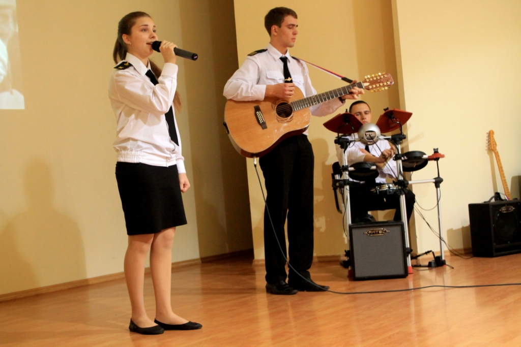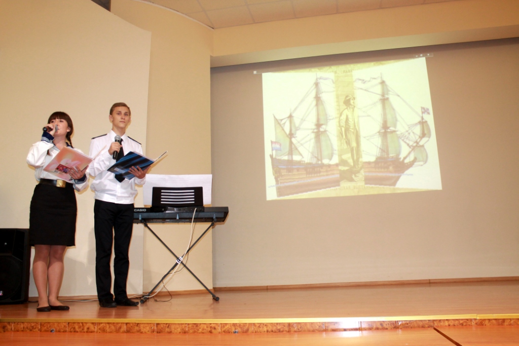 Вдохновенное торжественное открытие, впечатляющие презентации по истории становления и развития Российского Флота украсил прекрасный тематический музыкальный подарок в сопровождении ВИА «Возрождение» Морского Клуба. Проникновенно звучал стих курсанта Борисовича Никиты в его исполнении, как автора, посвященный этой торжественной дате. С молодежным задором выступили на сцене курсанты молодежного военно-патриотического объединения «Морских классов профильной подготовки» МБОУ СОШ-66 Железнодорожного района, мечтающие поступить в колледж и посвятить свою жизнь морю.