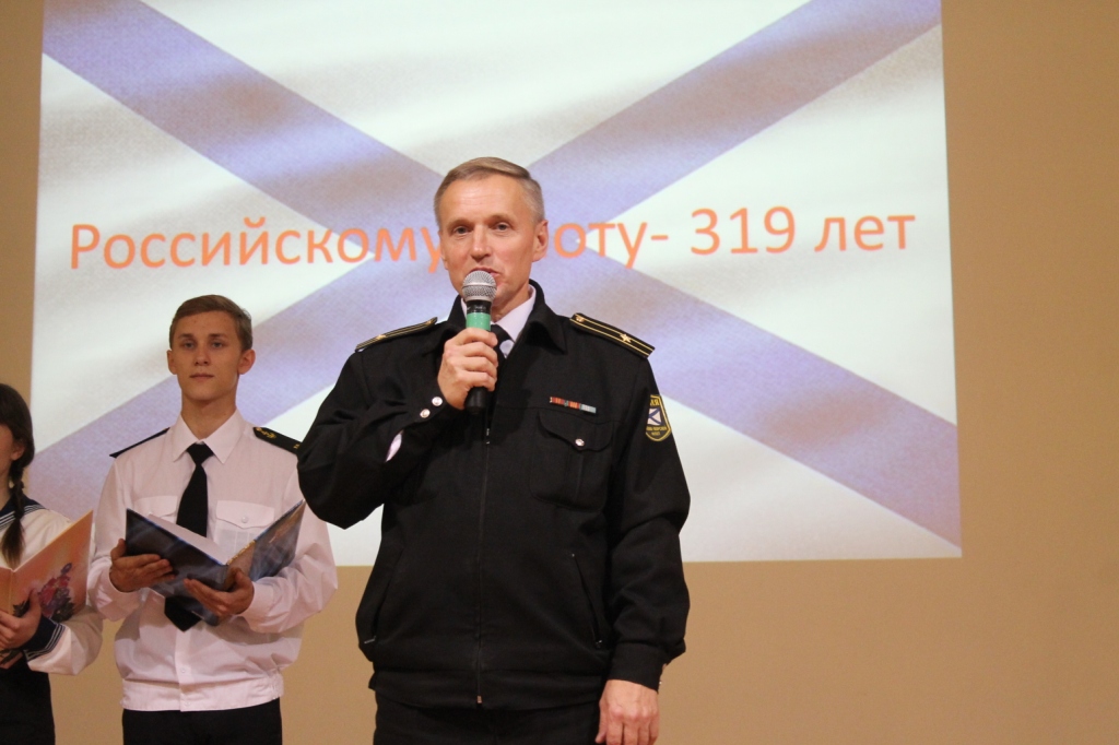 «Российский Флот-это не только корабли, это люди. Сильные духом профессионалы. Стать настоящим мужчиной, Российским моряком - великое благо для юноши. Этого можно достичь не отрываясь от корней героического прошлого нашего Отечества. Ведь ничто так не формирует мужество как пример героев и сохранение в своих сердцах этой духовной памяти» - напутствовал флотскую молодежь директор колледжа Владимир Юрьевич Маевский.
