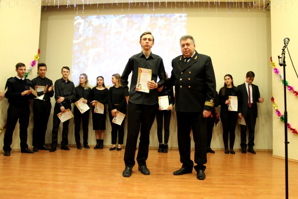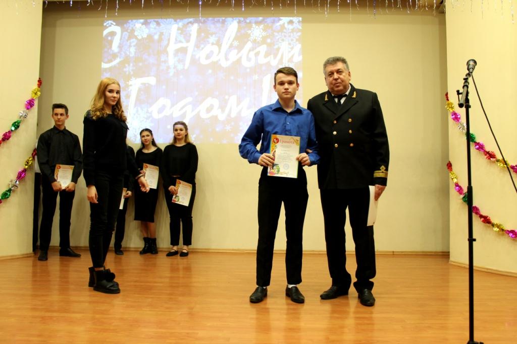 26 декабря 2017 года в ГБПОУ РО «Ростовский-на-Дону колледж водного транспорта» состоялся праздничный концерт, посвященный Новому 2018 году. Концерт открыл директор колледжа Владимир Юрьевич Маевский, он пожелал всем присутствующим всего самого наилучшего в наступающем 2018 году. Участники подготовили концертные номера в морской и новогодней тематике. Концертный зал был наполнен новогодней атмосферой и бурными аплодисментами. Поздравляем всех с наступающим Новым годом и желаем семь футов под килем.