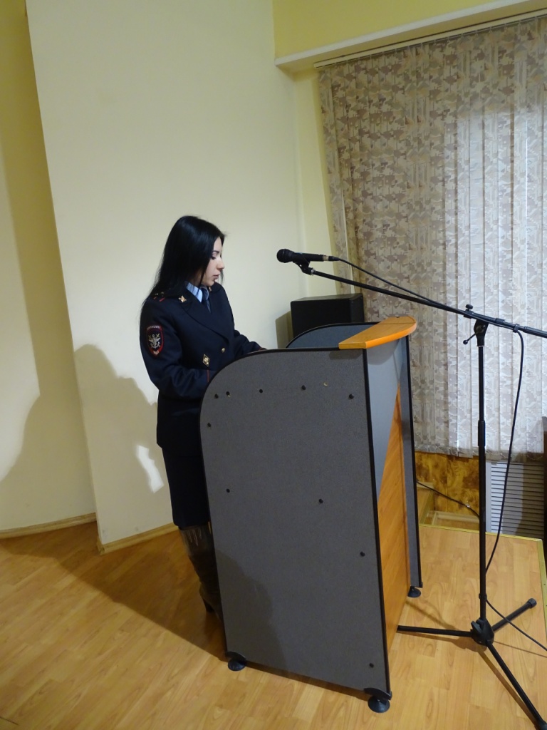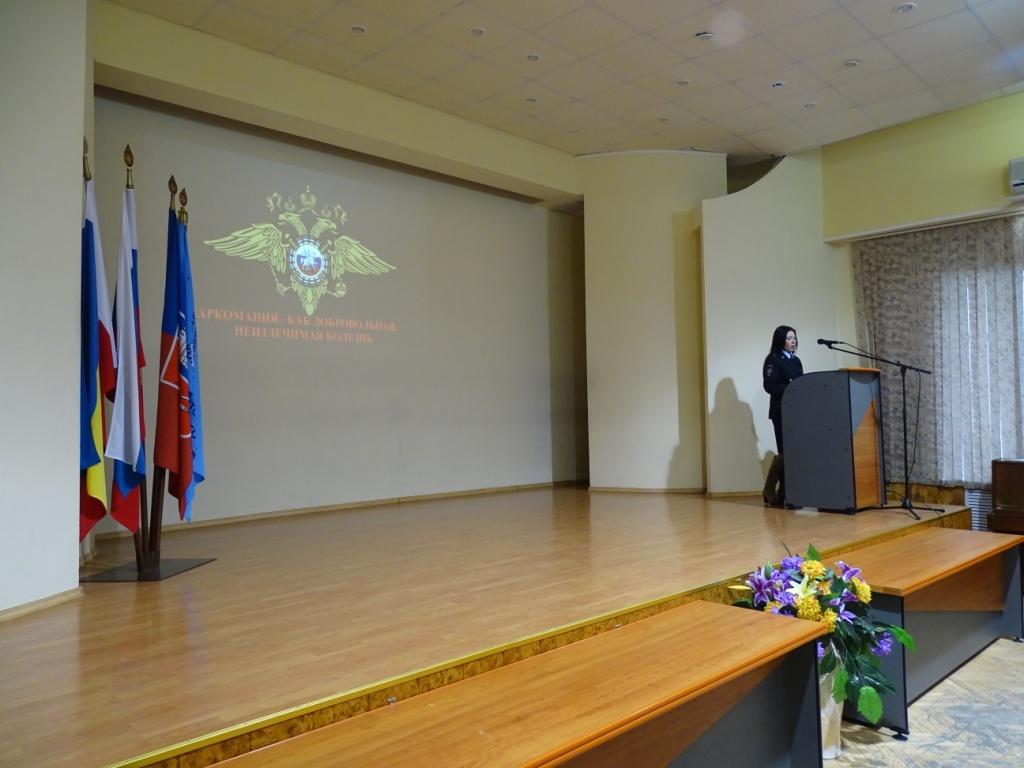 19 декабря 2016г. В ГБПОУ РО «Ростовский-на-Дону колледж водного транспорта» состоялась встреча с сотрудниками ПДН ЛО МВД России в порту г. Ростова-на-Дону. Инспекторами была проведена беседа о вреде наркомании для здоровья человека. А так же об уголовной и административной ответственности за хранение и сбыт наркотических веществ. Выступающие ответили на заданные вопросы присутствующих.
