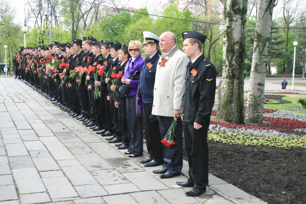 А на кануне 08.05.2011 года по традиции курсанты «Ростовского на Дону колледжа водного транспорта» участвовали в торжественных мероприятиях в сквере Фрунзе, у памятника «Павшим войнам», где собрались ветераны, администрация Пролетарского района города Ростова на Дону, рота почетного караула и сводный оркестр ростовского гарнизона, представители казачества и разных религиозных конфессий, а также жители нашего города.