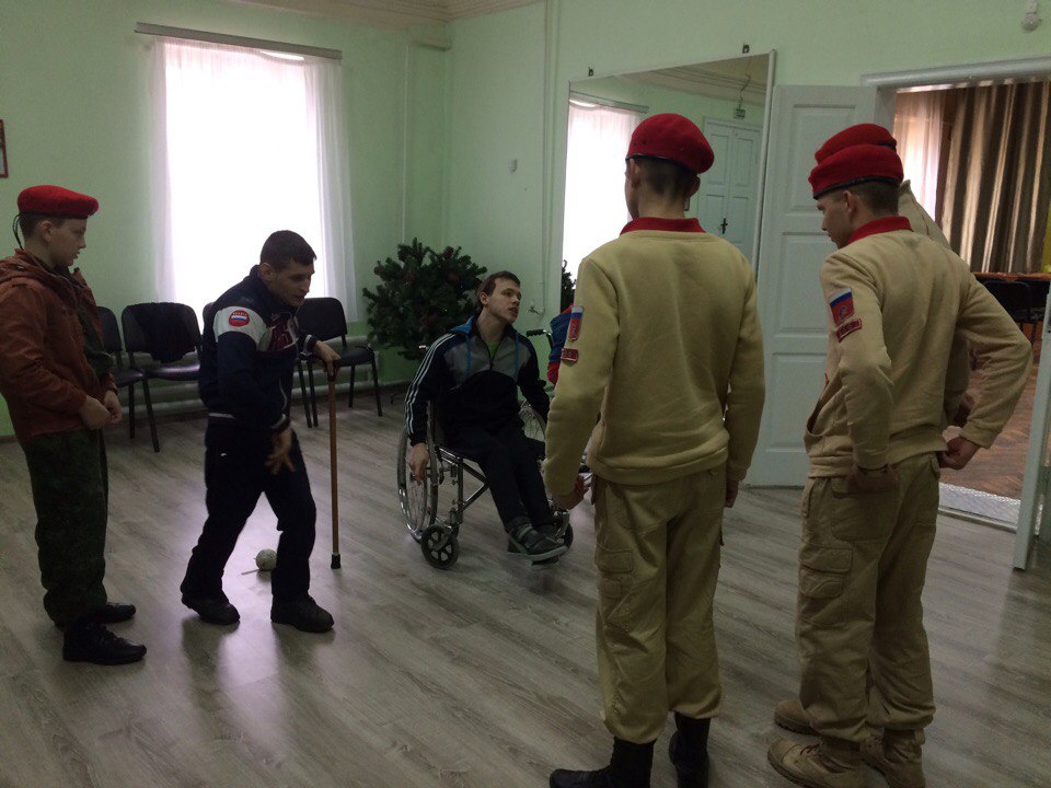 16 марта посетили детский дом, для детей с нарушенной опорно-двигательной системы. Несмотря на то, что некоторым детям трудно ходить, а некоторые прикованы к инвалидным коляскам, их мужеству можно только завидовать. У всех ребят есть свой талант. Дети были рады знакомству с юнармейцами, и показали им, как проходит их обычный день. Дети показывали свои комнаты, учебные классы. Так же был показан фильм о том, что нельзя бросать намеченное дело на полпути. После фильма дети признались, что фильм их вдохновил и дал новые силы идти до конца. Детям показали искусство рукопашного боя и ответили на вопрос об Юнармии. Также дети научили юнармейцев играть в игру, которую они придумали под названием «Бочче».