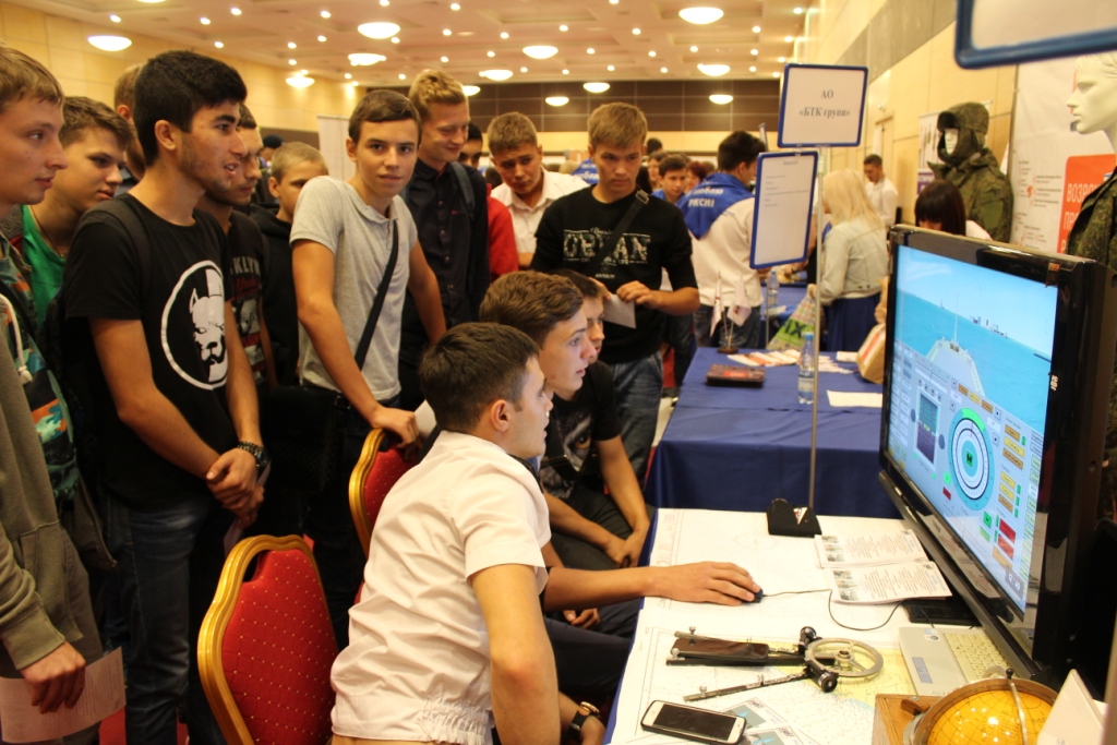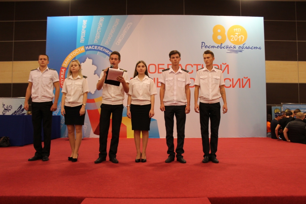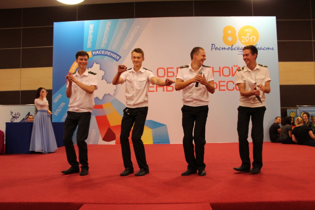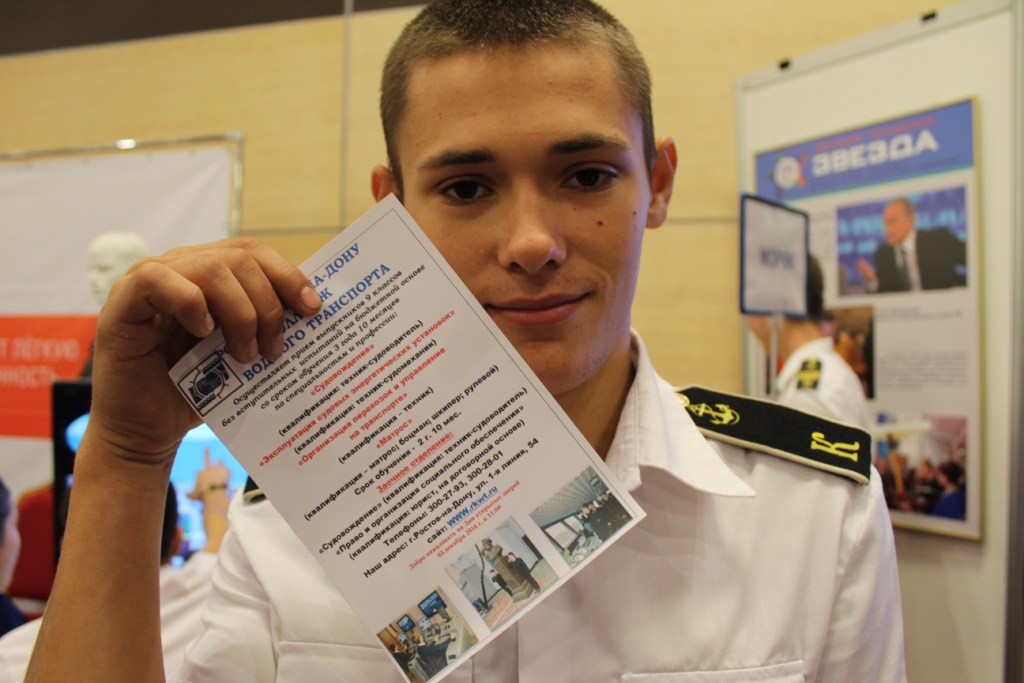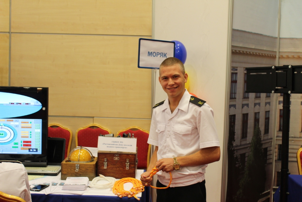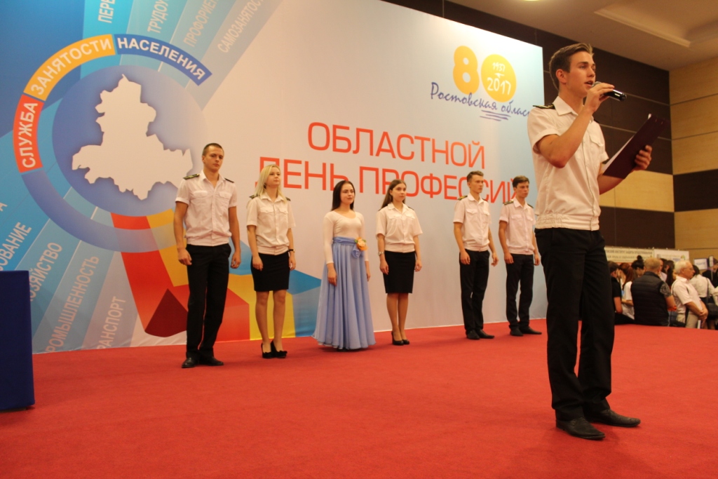 7 сентября 2017г. курсанты ГБПОУ РО «Ростовский-на-Дону колледж водного транспорта» приняли участие в «Областном дне профессий», который состоялся в зале «Аметист» КВК «ДонЭкспоцентр». В рамках мероприятия была организована широкомасштабная профориентационная акция для людей разных поколений - от дошкольников до пенсионеров. В течение всего мероприятия работали мобильные офисы центров занятости населения. Психологи провели профориентационное тестирование по выбору профессии. Для тех, кому только предстоит сделать выбор, была подготовлена презентация «Профессии будущего». Например, для самых маленьких участников праздника прошли развивающие занятия «Азбука профессий», на которых дошкольники освоили азы строительных профессий. Так же был подготовлен ряд мастер-классов, тренингов, тестирований, викторин и практических занятий: «Роспись керамических изделий», «Грамотное резюме – 50% успеха при трудоустройстве», «Как найти работу и пройти собеседование», «Как открыть свое дело». Впервые в рамках мероприятия для школьников были организованы профориентационные экскурсии на предприятия. Посетители Областного дня профессий прошли онлайн-собеседование с работодателями из других территорий области. Предприятия выступили с презентациями своих производств.