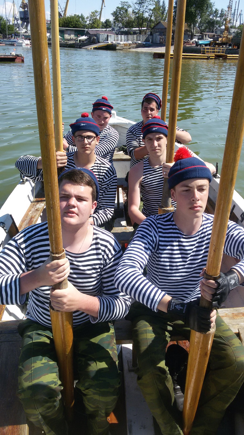 В заключении, по плану фестиваля, наша флотская молодежь представила зрителям зрелищный элемент военно-прикладного вида спорта «Морское многоборье» - померившись силой и умением в шлюпочной регате с коллегами - курсантами Института водного транспорта имени Г.Я.Седова.