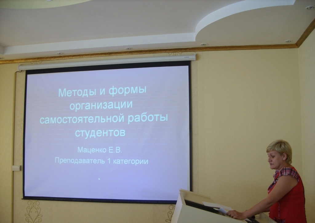 - Маценко Е.В. преподаватель истории и обществознания – тема: «Формы и методы организации самостоятельной работы студентов».