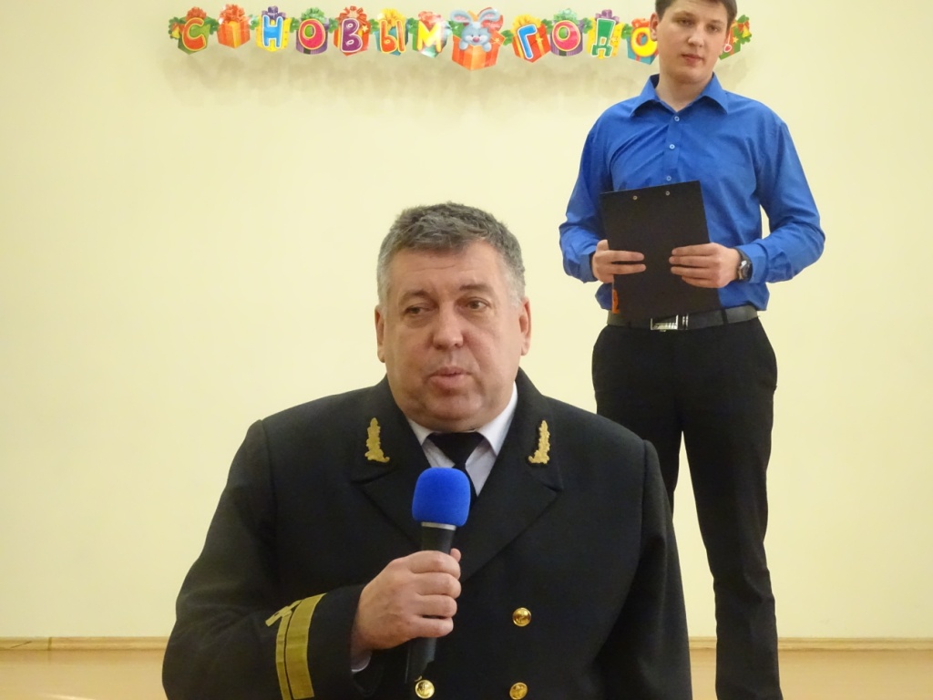 В официальной части мероприятия с поздравлениями выступил директор колледжа В.Ю. Маевский. Владимир Юрьевич поздравил всех курсантов и сотрудников колледжа с наступающим Новым годом, пожелал счастья, здоровья и успехов в 2016 году. Затем слово взял заместитель директора по воспитательной работе А.М. Тимошенко. Алексей Михайлович подвел итоги конкурса «Новогодняя стенгазета» и вручил памятные призы участникам и победителям.