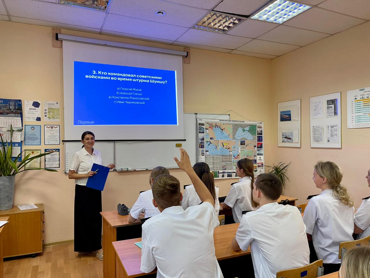 3 сентября 2025г. курсанты ГБПОУ РО «Ростовский-на-Дону колледж водного транспорта» прослушали лекцию «А что после войны?», проводимую федеральным государственным бюджетным учреждением «Российский детско-юношеский центр» и Общероссийской общественно-государственной просветительской организацией «Российское общество Знание».