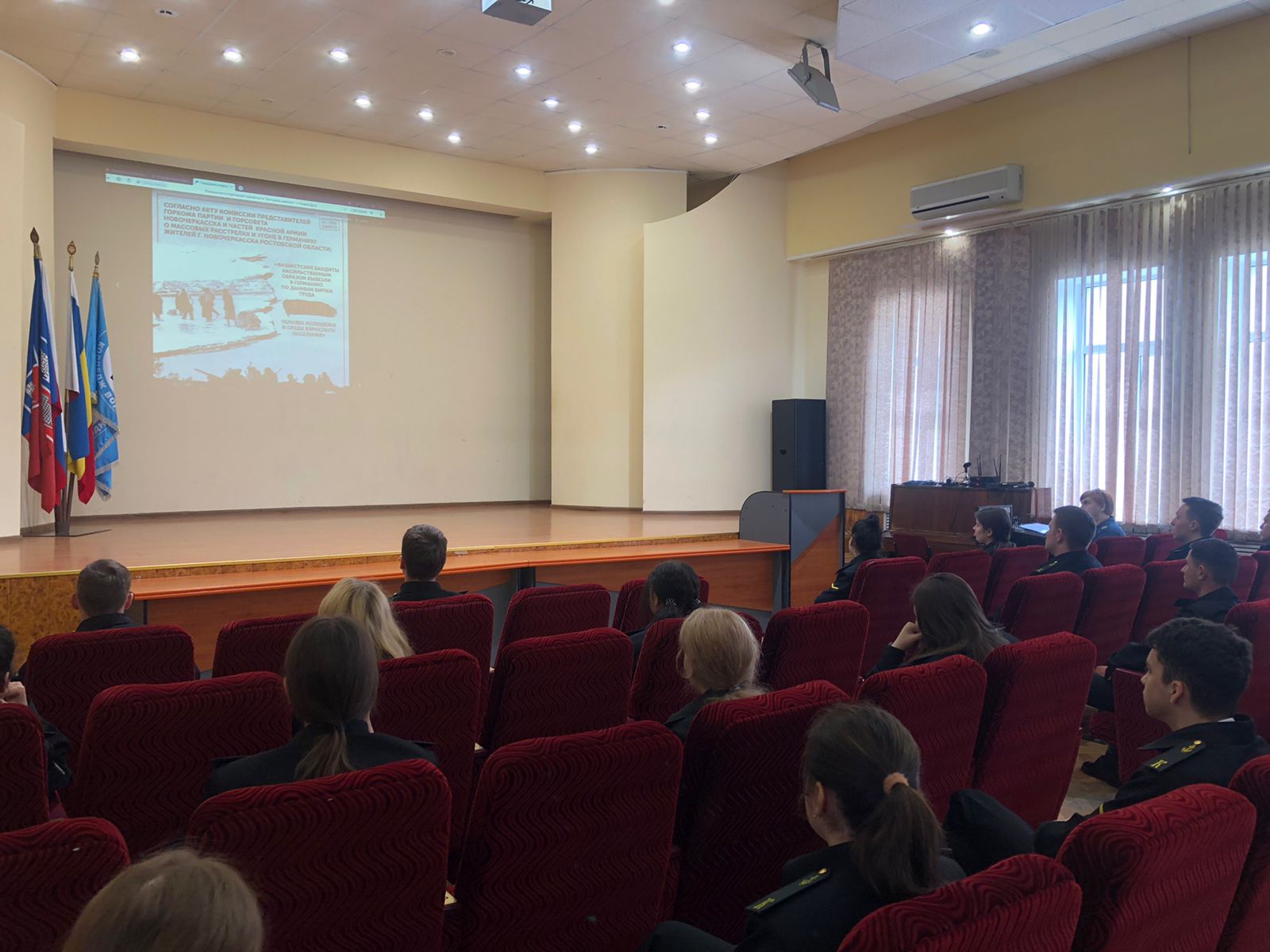 19 апреля 2022 года в ГБПОУ РО «Ростовский-на-Дону колледж водного транспорта» был проведён классный час "Реконструкция исторических фактов "Без срока давности" " в рамках проведения Дня единых действий в память о геноциде советского народа нацистами и их пособников в годы Великой Отечественной войны. В мероприятии приняли участие курсанты первого, третьего и четвёртого курсов.