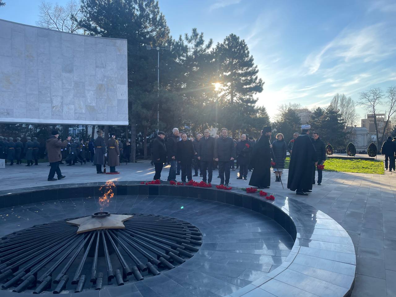 29 ноября 2022г курсанты ГБПОУ РО «Ростовский-на-Дону колледж водного транспорта» приняли участие в мероприятии, посвященном торжественному возложению венков и цветов к мемориальному комплексу «Павшим воинам», посвященном первому освобождению города Ростова-на-Дону от немецко-фашистских захватчиков. Венки и цветы возложили представители правительства региона, ветераны, сотрудники полиции, представители молодежных организаций, гости и жители Ростова-на-Дону. Собравшиеся почтили Минутой молчания павших героев, заплативших своими жизнями за свободу Родной земли. Каждый год ребята находят время, чтобы почтить память героев Великой Отечественной войны. Ведь почти у каждого в семье был дед или прадед, кто боролся с фашистами в 40-х годах. Вместе с нашими курсантами бок обок шли местные юнармейцы и учащиеся учебных заведений.