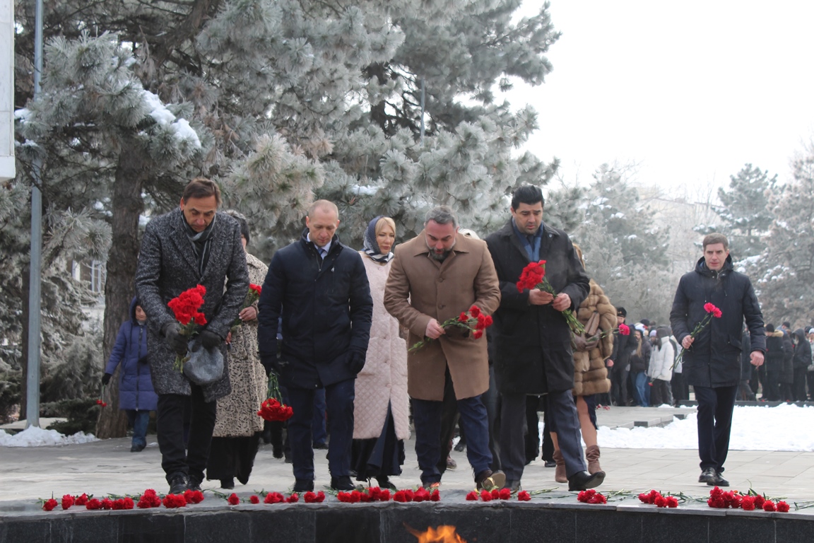 Администрация Пролетарского района города Ростова-на-Дону, ветераны, сотрудники полиции, представители молодежных организаций, гости и жители города Ростова-на-Дону. Собравшиеся почтили Минутой молчания павших Героев, заплативших своими жизнями за свободу родной земли.