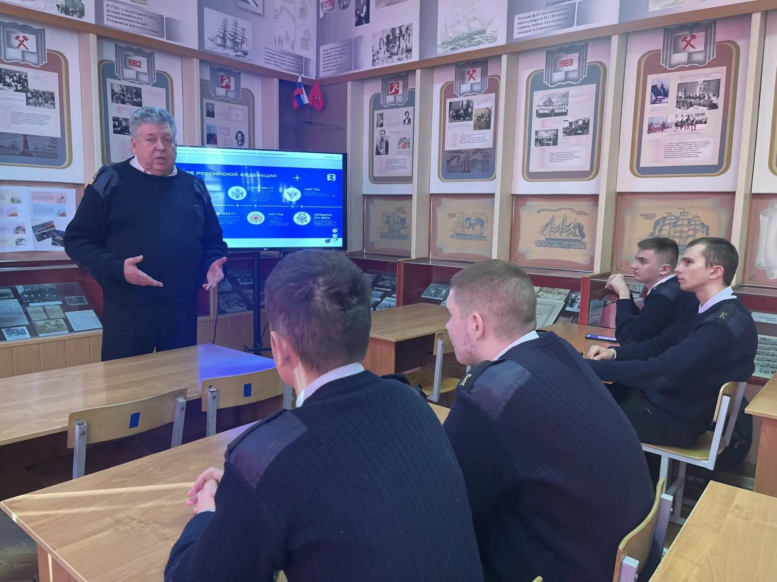 В рамках этого дня в нашем колледже прошел круглый стол под названием «Связь эпох: путь государственной символики России». Курсанты в ходе дискуссии сравнивали визуальные изменения герба, флага и гимнов на протяжении веков, анализируя, как менялось их смысловое наполнение, отражая ключевые этапы развития нашей страны.