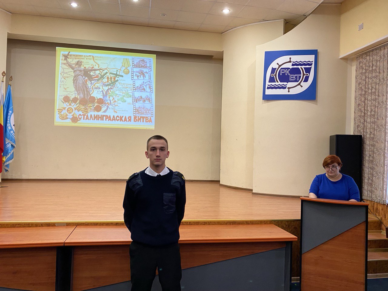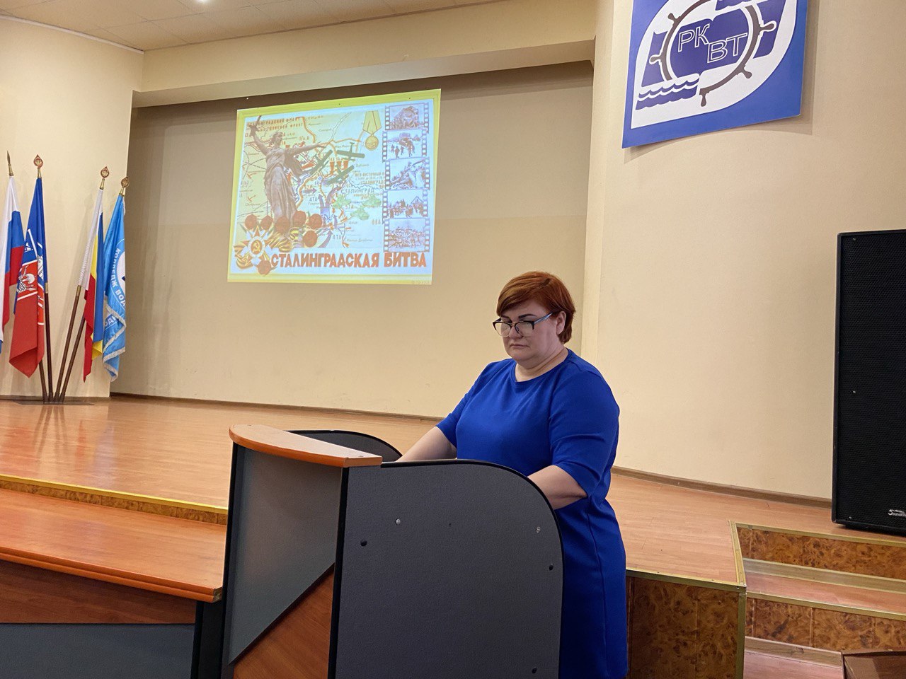 2 февраля 2024г. в ГБПОУ РО «Ростовский-на-Дону колледж водного транспорта» состоялось мероприятие, посвященное Дню разгрома советскими войсками немецко-фашистских войск в Сталинградской битве.