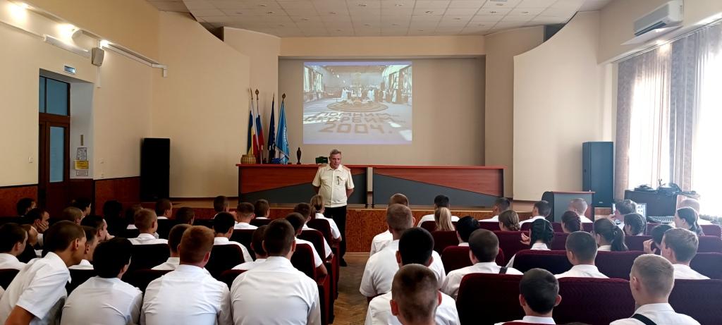 В ходе урока мужества был показан документальный фильм «Беслан. Прерванный урок», на основании которого была проведена тематическая беседа, направленная на объединение курсантов в деле противодействия терроризму, формирования неприятия идеологии насилия.