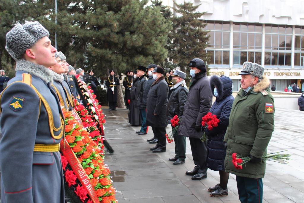 23 февраля 2021 года курсанты ГБПОУ РО «Ростовский-на-Дону колледж водного транспорта» приняли участие в торжественном возложении цветов и венков к мемориальному комплексу «Павшим воинам» в сквере им. Фрунзе, посвященном Дню защитника Отечества.