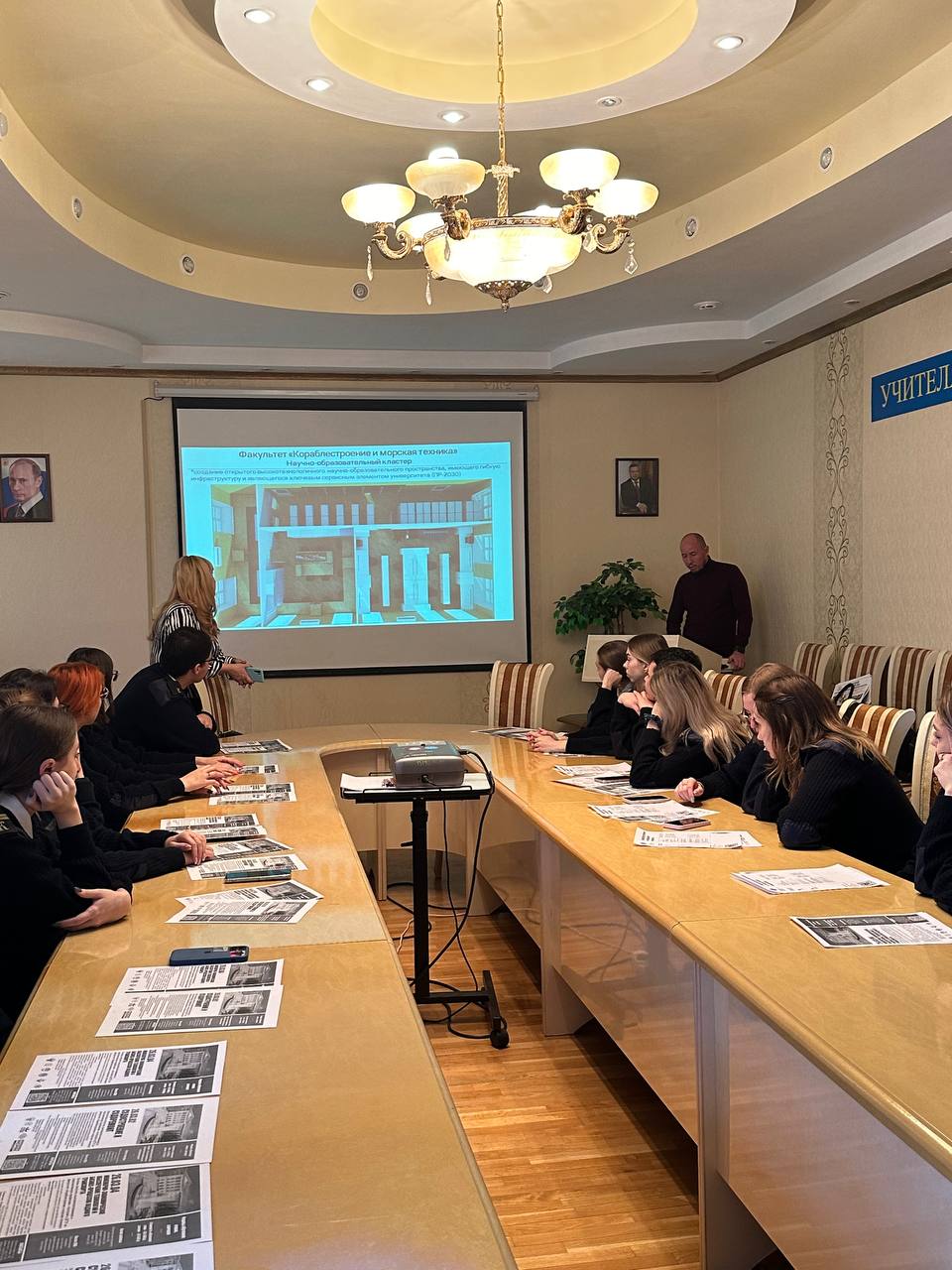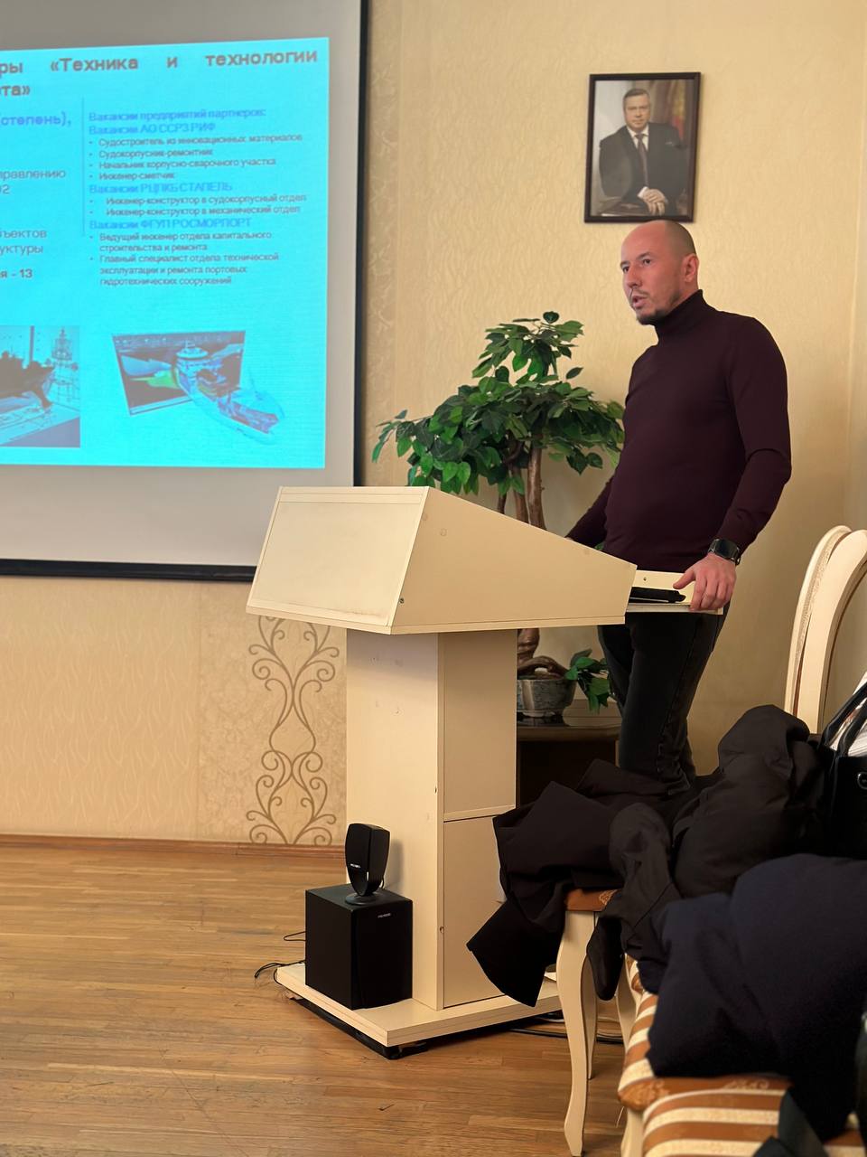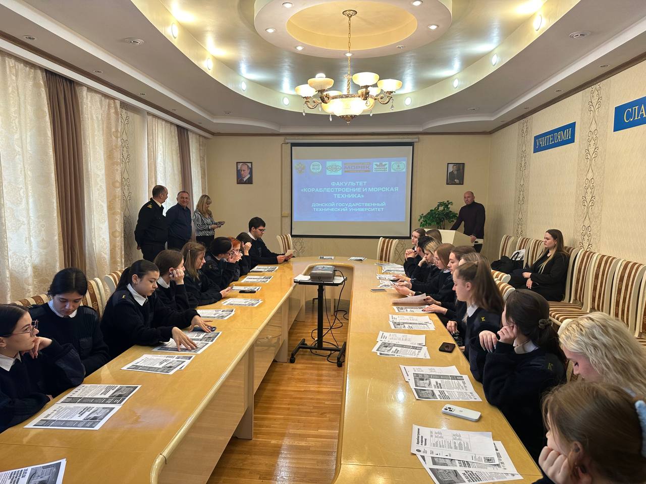 30 октября 2024 года представители ДГТУ, факультета "Кораблестроение и морская техника" провели мероприятие с курсантами 4 курса, специальности 23.02.01 "Организация перевозок и управление на транспорте".Мероприятие было нацелено на формирование беспрерывного образования.