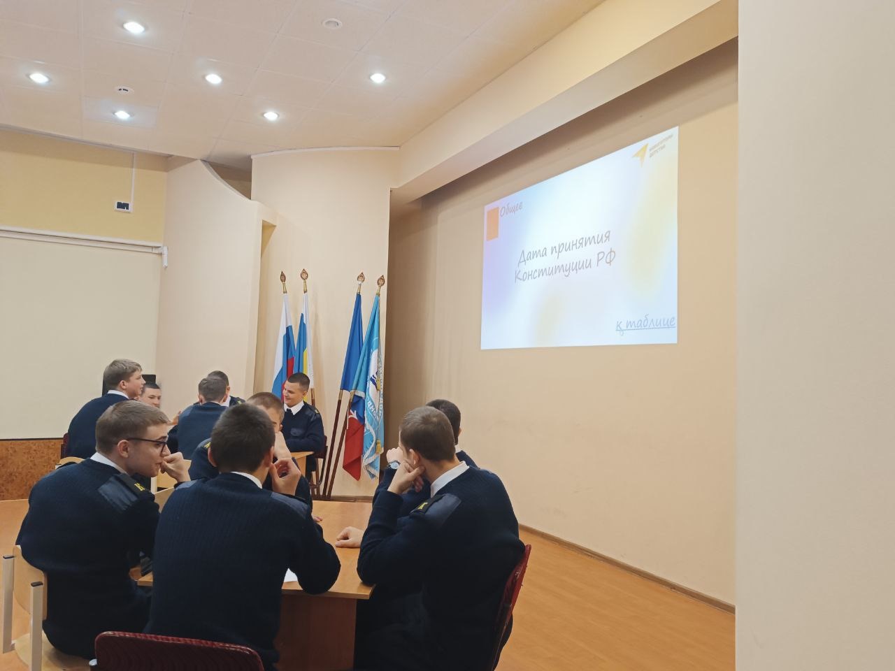 12 декабря в колледже состоялась интеллектуальная игра «Конституция моей страны», в которой приняли участие курсанты групп ТС14 и ТМ12. Мероприятие прошло при поддержке советника директора по воспитанию Ланцевой О.В. и преподавателя обществознания Полонской В.А. Ребята продемонстрировали свои знания о Конституции РФ, активно участвуя в обсуждениях и борьбе за каждый правильный ответ. По итогам напряженной игры с перевесом в 1 очко победу одержала группа ТС14. Поздравляем курсантов с победой и желаем дальнейших успехов в обучении и воспитании правовой грамотности!