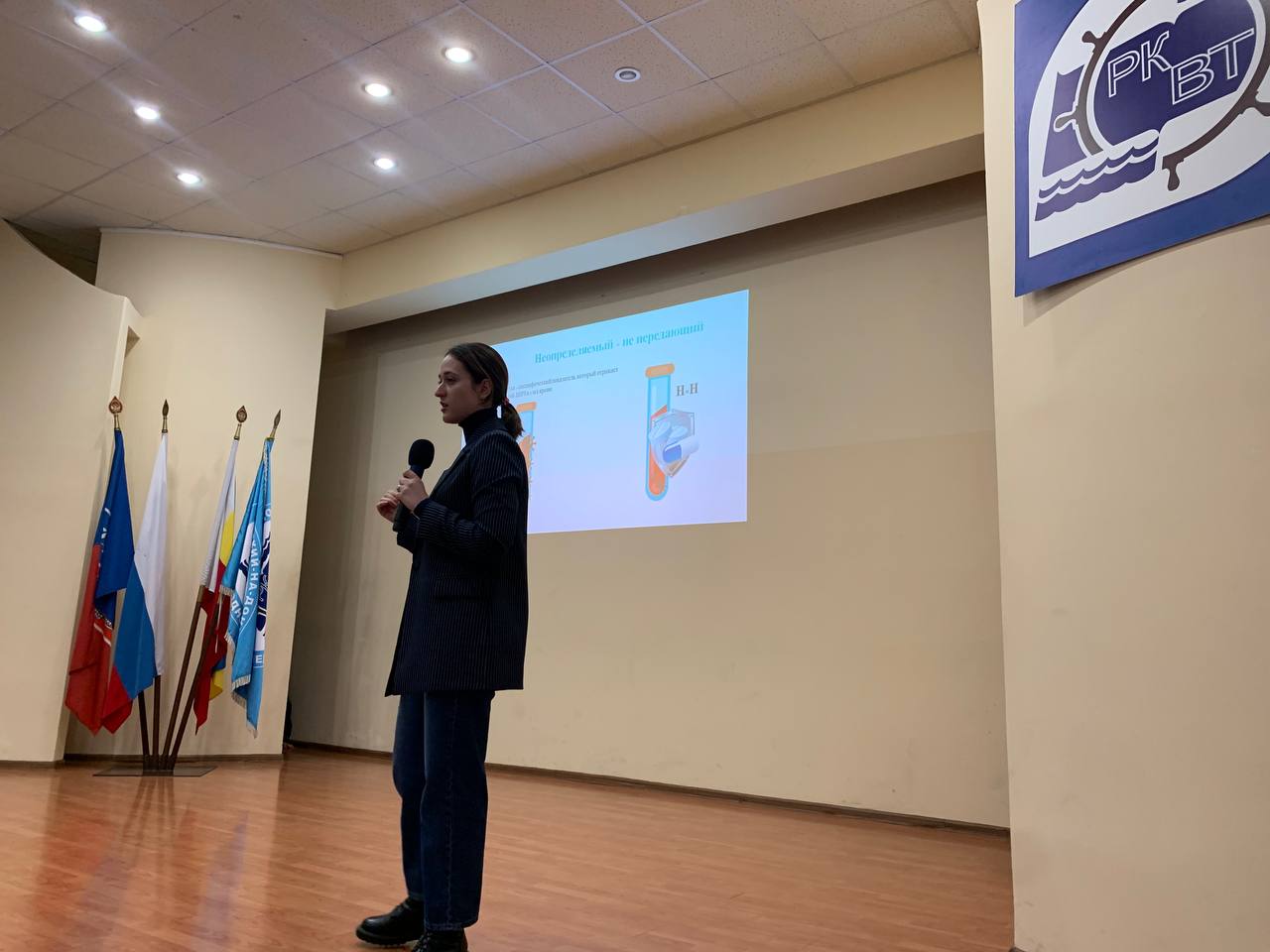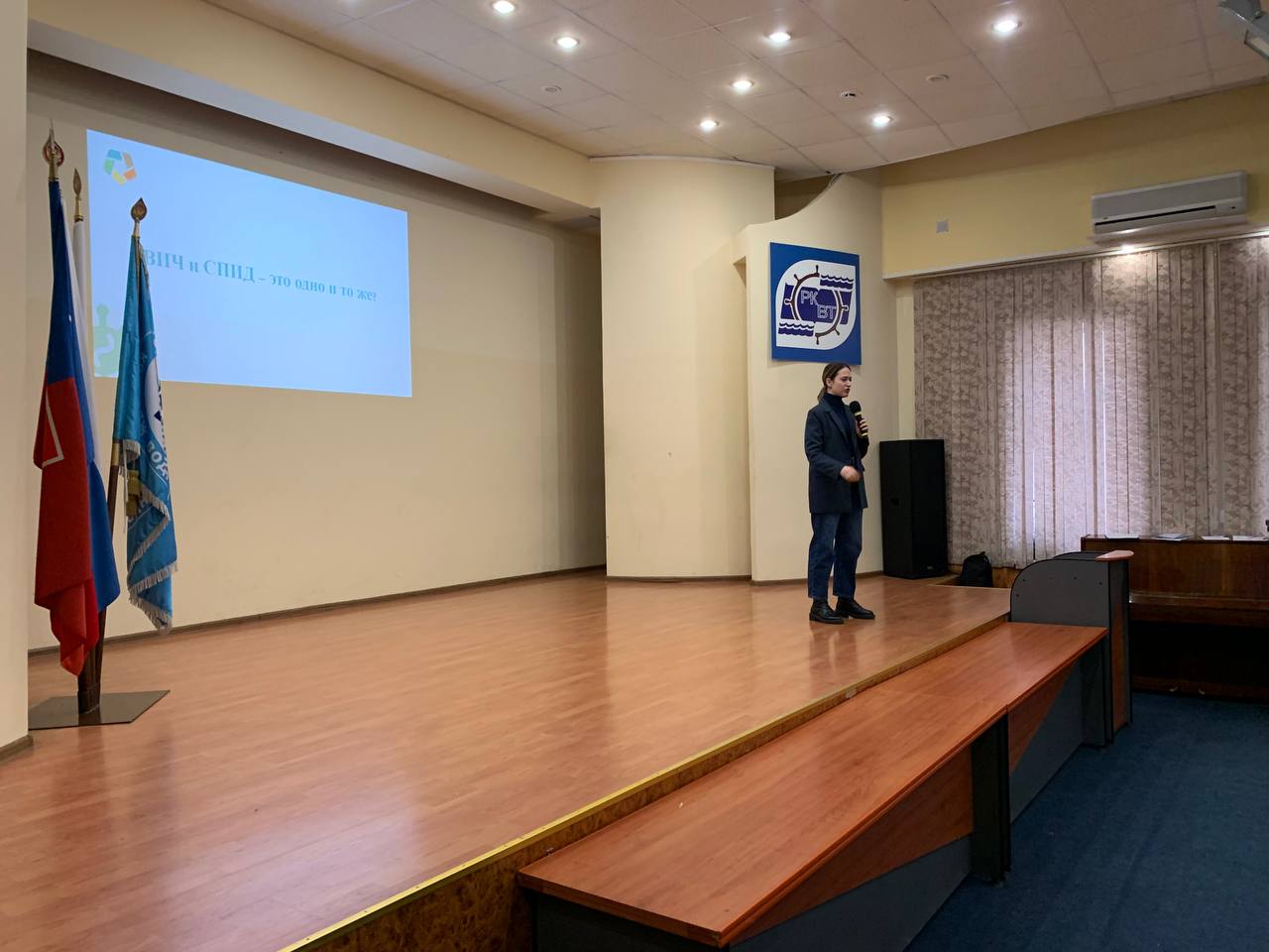 28 ноября 2023 года в ГБПОУ РО «Ростовский-на-Дону колледж водного транспорта» накануне Всемирного дня борьбы со СПИДом, АНО «Центр охраны здоровья и социального развития» провели мероприятие с интерактивной лекцией "Меняем мир к лучшему: мифы и правда о ВИЧ-инфекции».