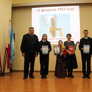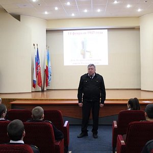 14 февраля 2024 года курсанты ГБПОУ РО «Ростовский-на-Дону колледж водного транспорта» организовали и провели Урок мужества, посвященный Второму освобождению г. Ростова-на-Дону от немецко-фашистских захватчиков. Маша Плаксюк – ученица школы № 30 имени Героя Советского Союза Кравцова, выступила со стихотворением, посвященном Дню освобождения города Ростова-на-Дону.