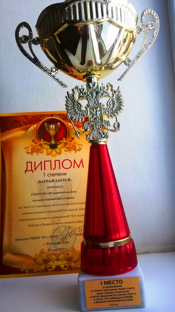 В ГБПОУ РО «Ростовский-на-Дону колледж водного транспорта» совместно с Ростовской региональной военно-патриотической организацией «Молодежный морской клуб», в соответствии с планом работы областного Совета директоров учреждений профессионального образования Ростовской области, была проведена Областная Спартакиада молодежи профессиональных образовательных учреждений Ростовской области допризывного возраста (военно-спортивный праздник), посвященный 74-й годовщине Победы над фашисткой Германией. В нем приняли участие 13 команд профессиональных образовательных учреждений Ростовской области.
