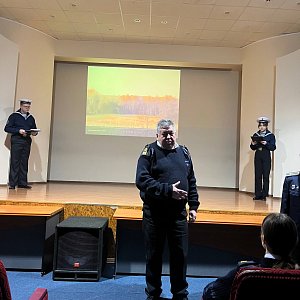 В напутственной речью выступил председатель Молодежного Морского Клуба Лазарев Александр Николаевич. Он призвал флотскую молодежь настойчиво готовить себя к защите Родины: изучать ее героическое наследие, постоянно совершенствовать свою физическую, общевойсковую и военно-морскую подготовки.