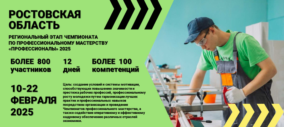 С 10 февраля – 22 февраля 2025г. состоится региональный этап Чемпионата по профессиональному мастерству «Профессионалы» в Ростовской области 2025 год.