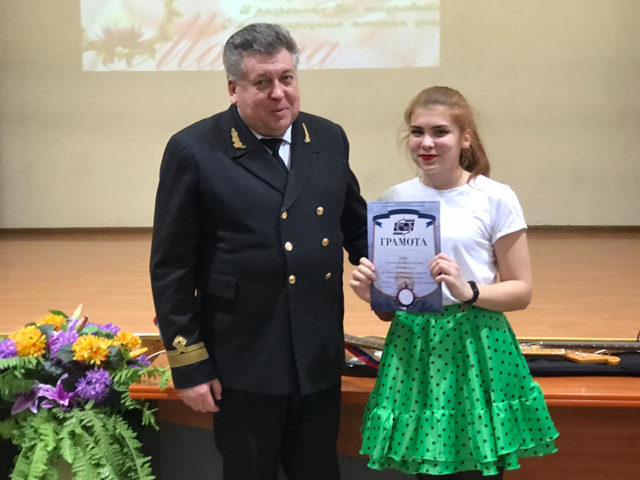 6 марта 2020г. в ГБПОУ РО «Ростовский-на-Дону колледж водного транспорта» состоялся праздничный концерт, посвященный Международному женскому дню. Открыл концерт директор колледжа Владимир Юрьевич Маевский, пожелавший всем дамам, мира, добра и весеннего настроения. А наши учащиеся подготовили интересную вокально-танцевальную программу.