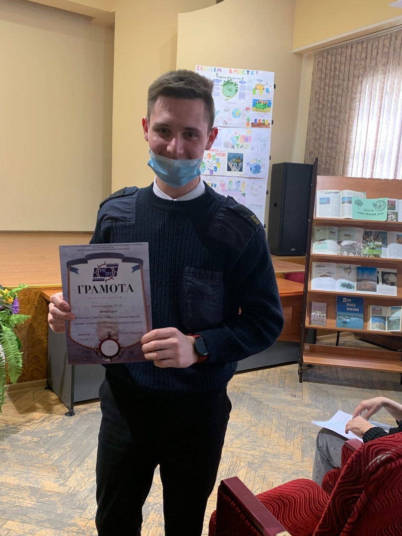 17 февраля 2021 года курсанты ГБПОУ РО «Ростовский-на-Дону колледж водного транспорта» приняли участие во всероссийском экологическом проекте «Начни с себя». В акции приняли участие курсанты 2 курса и преподаватели учебной дисциплины «Экологические основы природопользования» Сосновская С.М., «Обществознание» Епищева А.А.. Экспертами на мероприятии выступили: преподаватель-аспирант ЮФУ кафедры «Экология» Евстегнеева Н.А. и заведующая библиотечным фондом колледжа Антонова М.В.