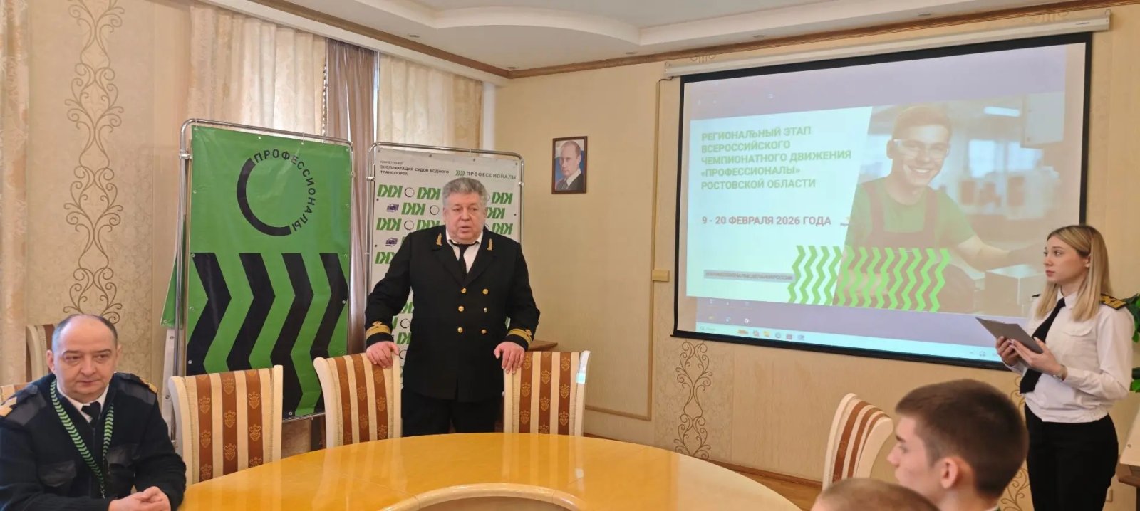 Сегодня, 9 февраля.2026 года, на базе государственного бюджетного профессионального образовательного учреждения Ростовской области «Ростовский–на-Дону колледж водного транспорта» состоялось торжественное открытие регионального этапа Движения «Профессионалы» Ростовской области 2026 по компетенции «Эксплуатация судов водного транспорта».