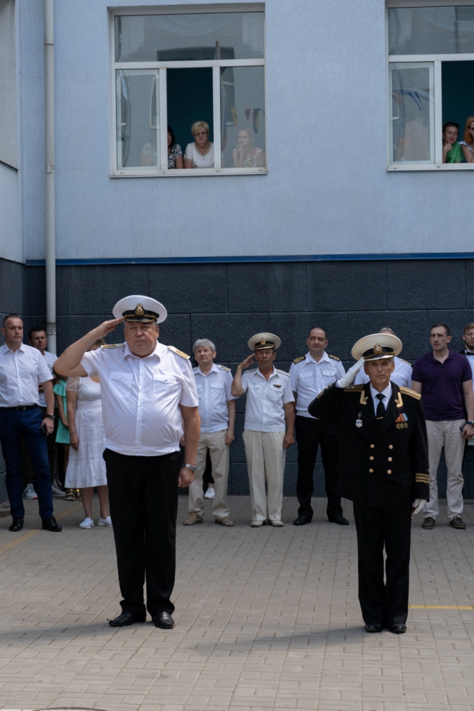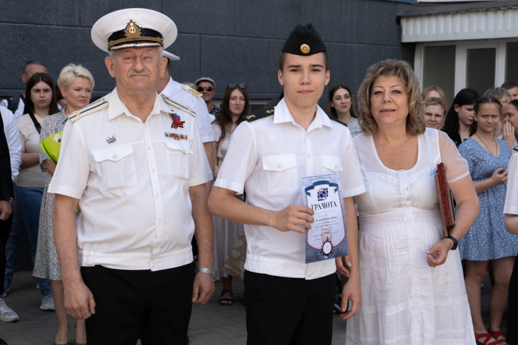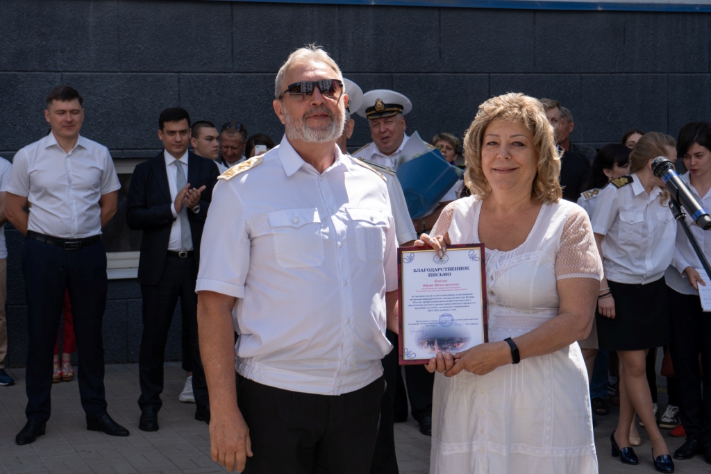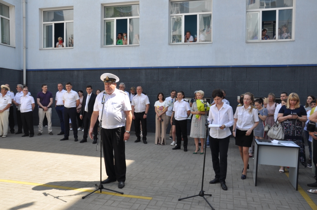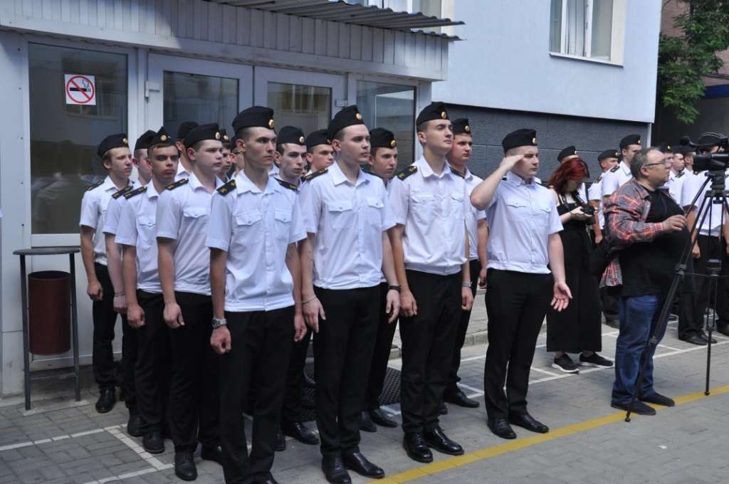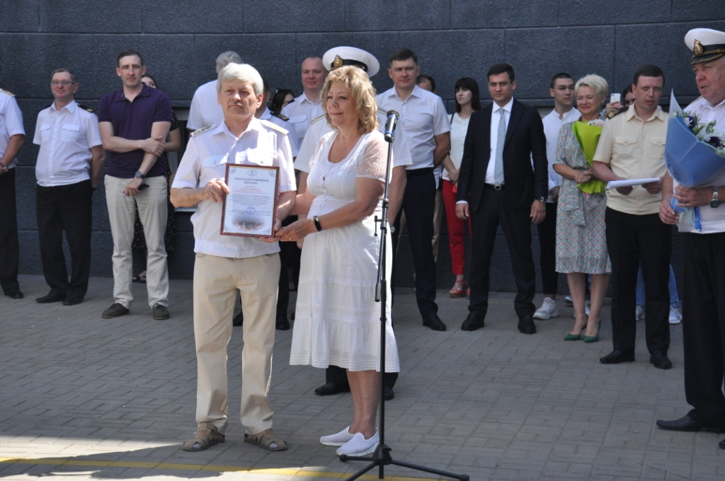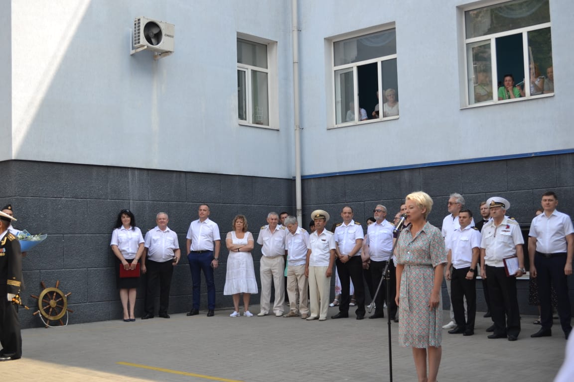 Ветеран Военно-морского флота капитан II ранга бывший заместитель директора по учебно-воспитательной работе и социальным вопросам Алексей Михайлович Тимошенко. Представители флотского сообщества.