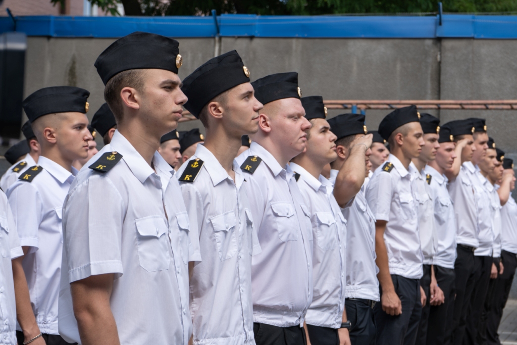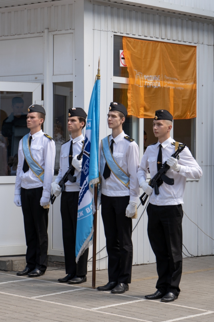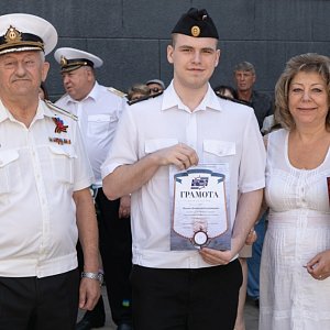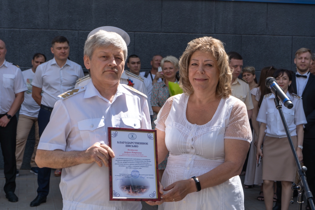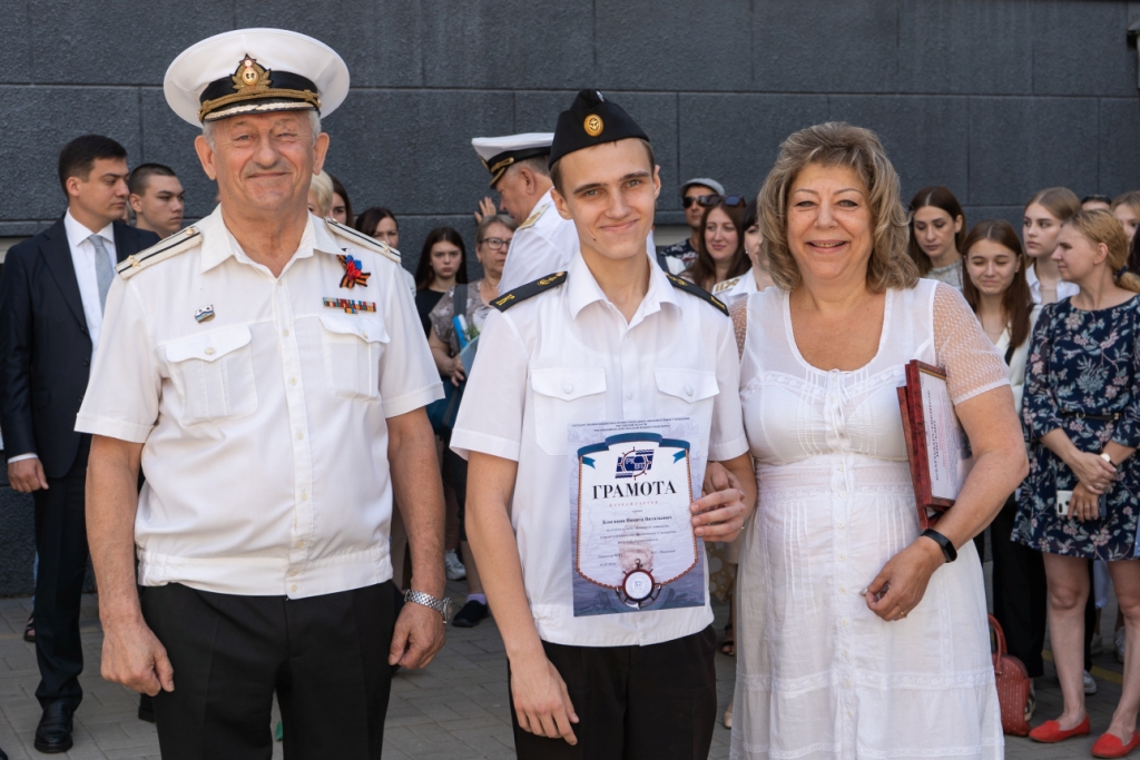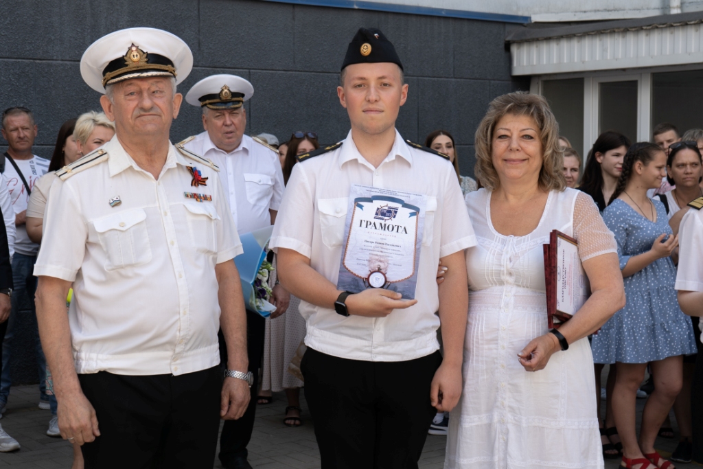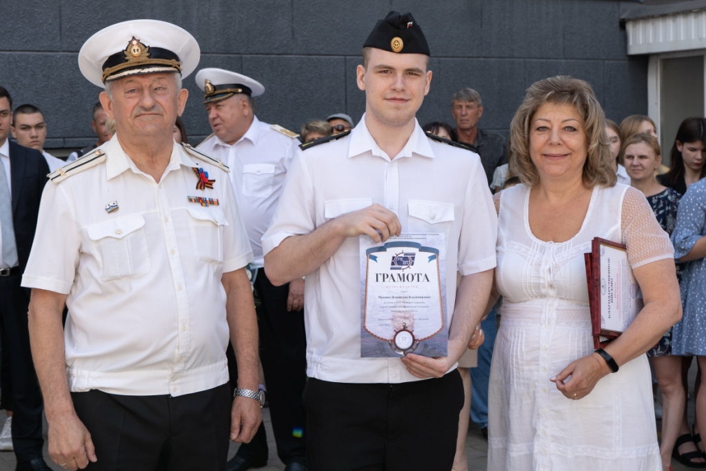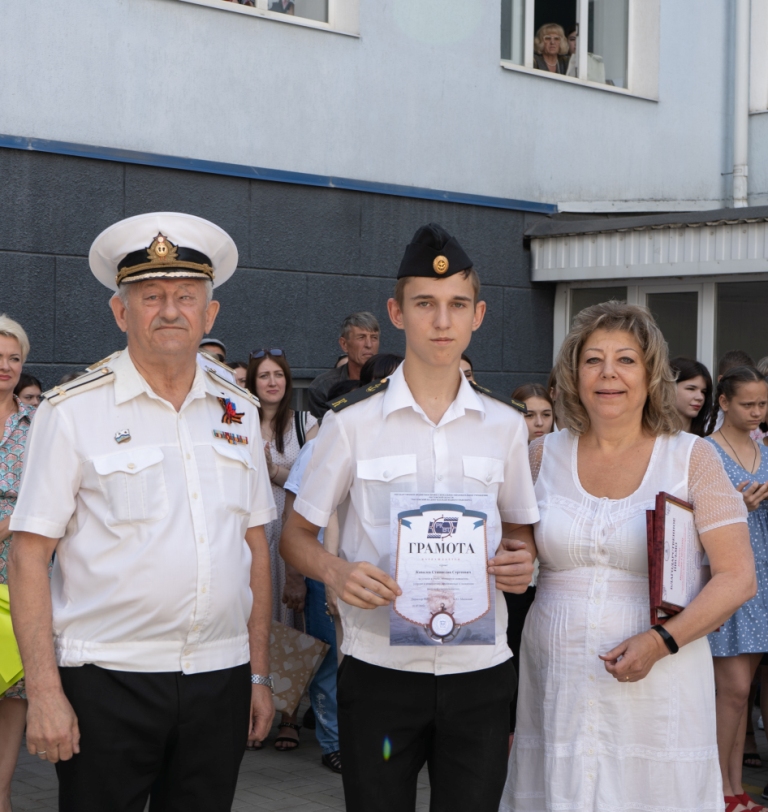 Ветеран Военно-морского флота капитан II ранга бывший заместитель директора по учебно-воспитательной работе и социальным вопросам Алексей Михайлович Тимошенко. Представители флотского сообщества.